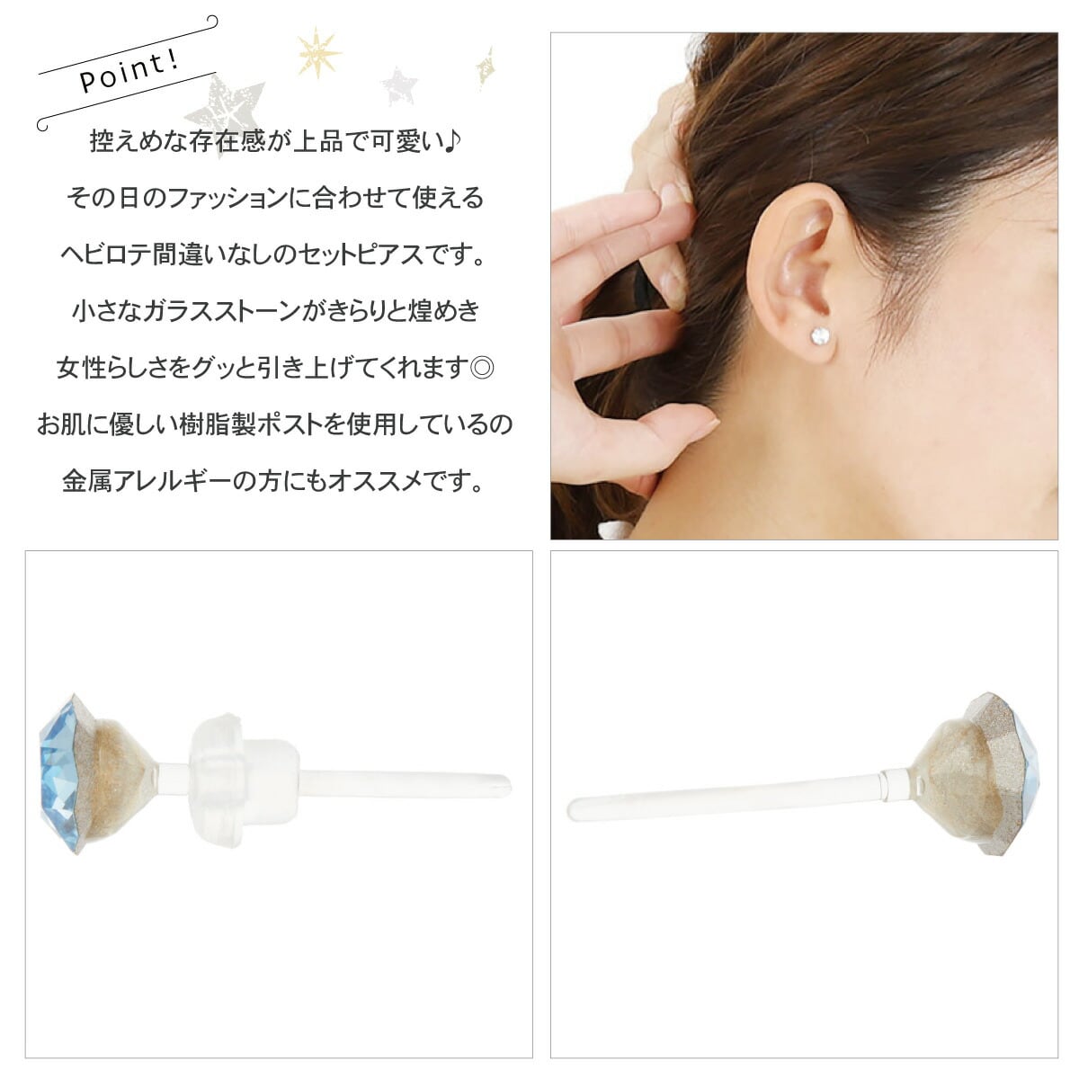 セットピアス レディース 日本製 樹脂製ポスト 3ペア 6点セット 小さい 小ぶり 目立ちにくい 1粒 1石 ラウンド 丸玉 キラキラ クリア カジュアル おしゃれ かわいい 記念日 誕生日 プレゼント ギフト メール便送料無料