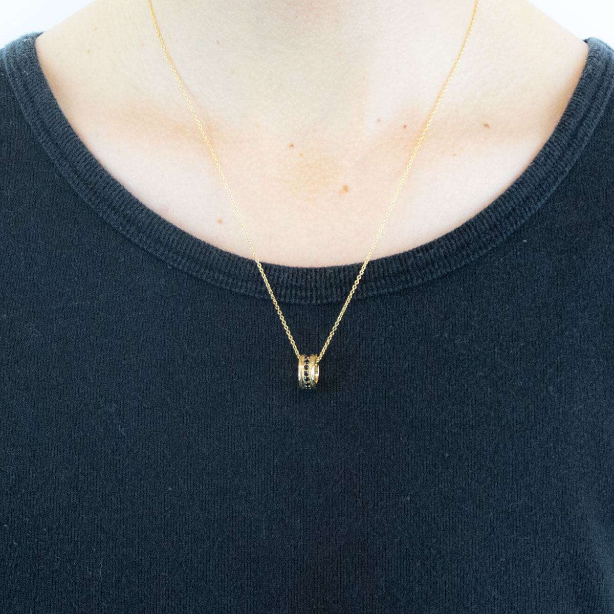 ハワイアンジュエリーのネックレス。リングをモチーフにしたデザイン。ゴールドベースのデザインに一周に詰め込められたジルコニアが高級感があり、お出かけにもお使い頂けます。