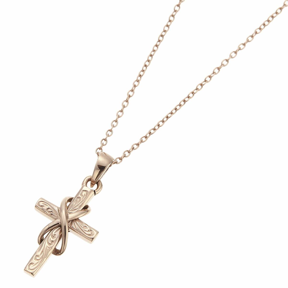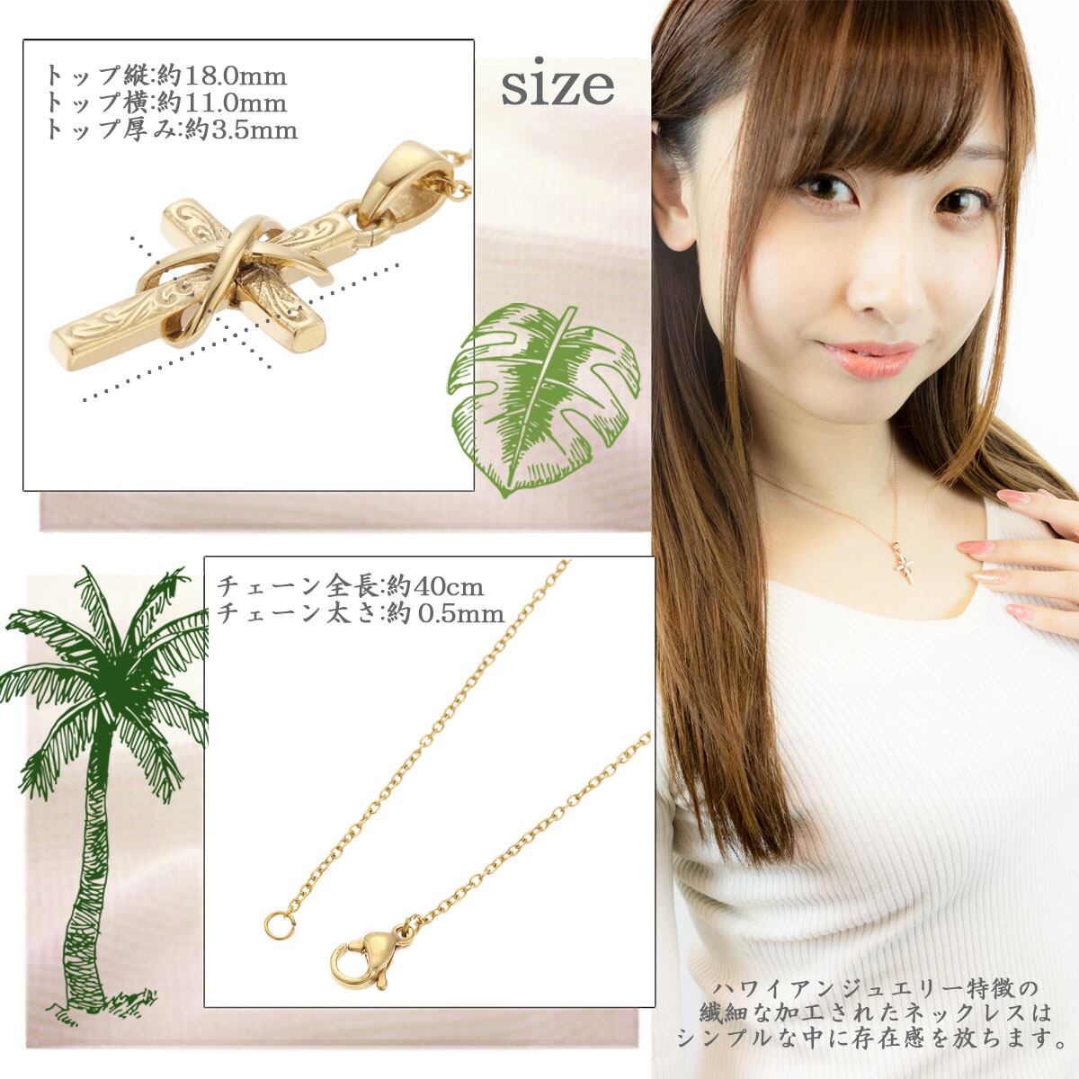 ネックレス レディース クロス 十字架 波 スクロール ハワイアンジュエリー ハワジュ サージカルステンレス おしゃれ シンプル カッコいい 普段使い カジュアル お守り 神秘の力 ゴールド ピンクゴールド お肌に優しい 安心 プレゼント ギフト 全長40cm 秋冬 大人気 あす楽