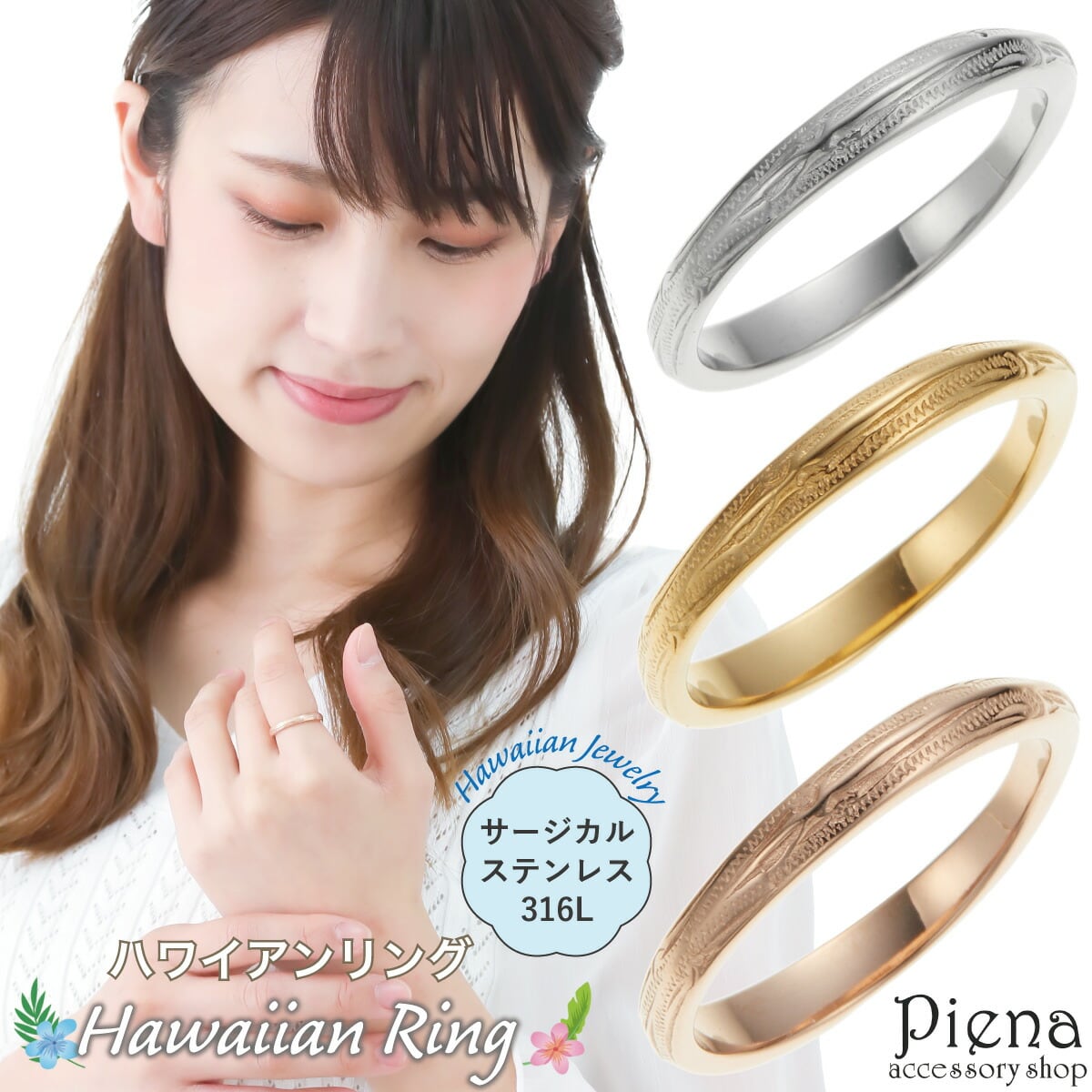 リング レディース メンズ サージカルステンレス316L ハワイアンジュエリー ハワジュ 彫り 模様 華奢 細身 お肌に優しい 金属アレルギー対応 上品 オシャレ 誕生日 記念日 プレゼント ギフト メール便送料無料