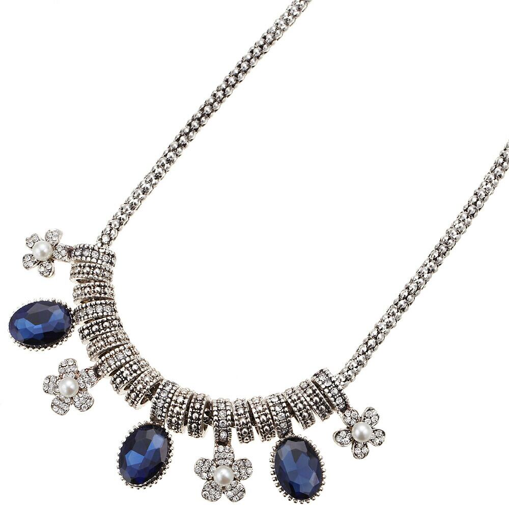 ネックレス レディース 大粒ストーンとフラワーのスネークチェーン風ゴージャスネックレス ベビーパール パヴェフラワー パーティー 2次会 アジャスター付き メール便 送料無料 プレゼント 春夏秋冬 大人気 あす楽