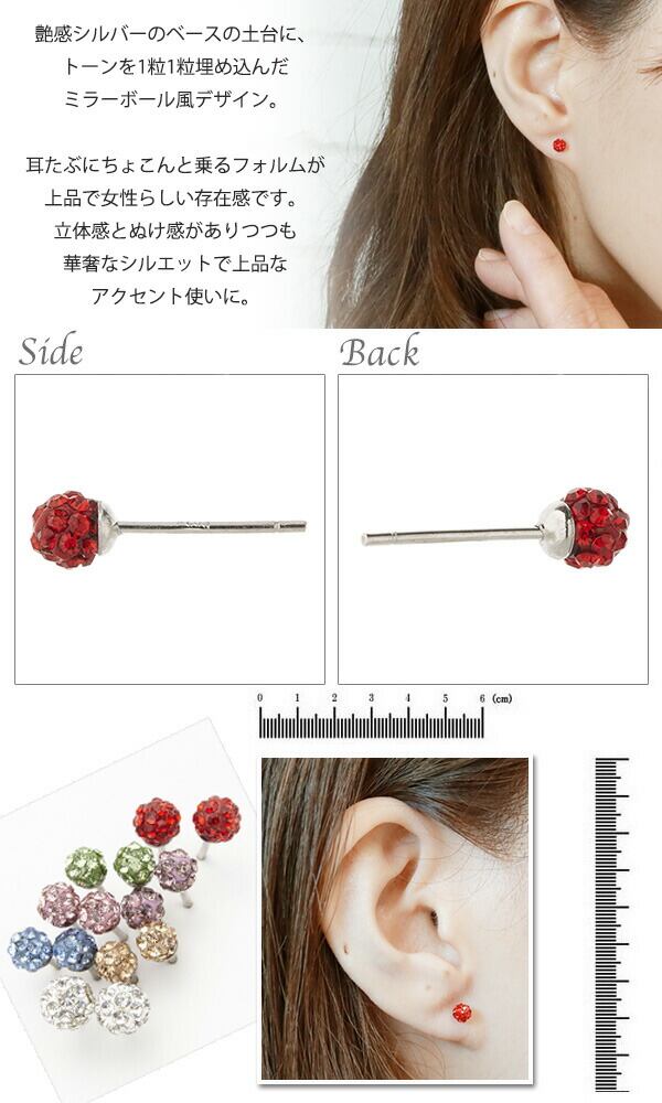 ピアス レディース シルバー925製 ストーンボール ビジュー キラキラ パヴェ 球体 小振り ミニサイズ かわいい シンプル 4ミリ お揃い 双子 プレゼント用にも メール便 送料無料 プチプラ プレゼント 春夏秋冬 大人気 あす楽