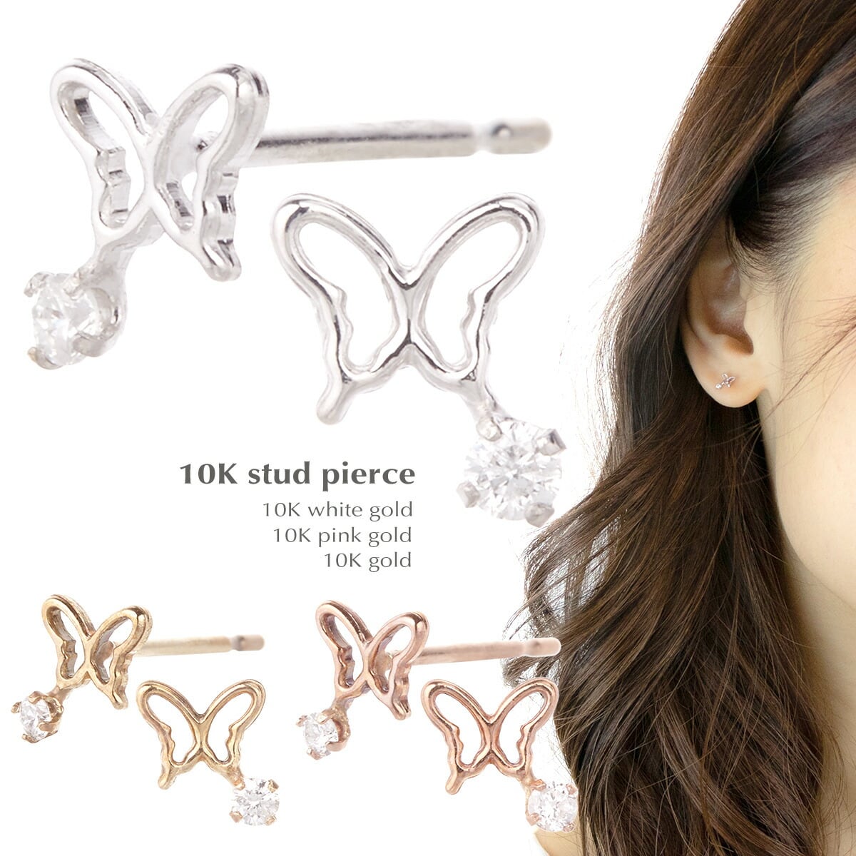 ピアス レディース K10WG K10 K10PG 天然ダイヤモンド バタフライモチーフ 宝石鑑別書カード付き シリコン樹脂付きキャッチ 蝶々 ダイアモンド プチサイズ ホワイトゴールド ゴールド ピンクゴールド 送料無料 プレゼント 春夏秋冬 大人気 あす楽