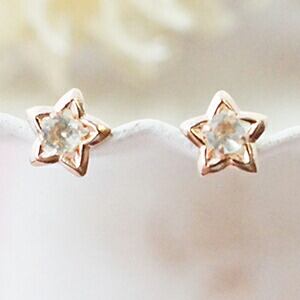 10金ピンクゴールドの星型のピアスに天然石のレモンクオーツが輝くとってもキュートなピアスです。