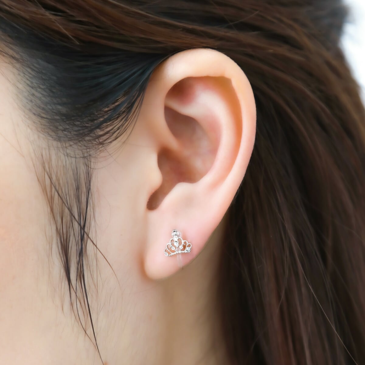 イヤリング ノンホールピアス レディース 日本製 樹脂製オメガパーツ ティアラ クラウン キラキラ シンプル 小さめ ミニ お肌に優しい 金属アレルギー対応 金アレ かわいい 大人可愛い オシャレ パーティー プレゼント ギフト 誕生日 記念日 メール便送料無料