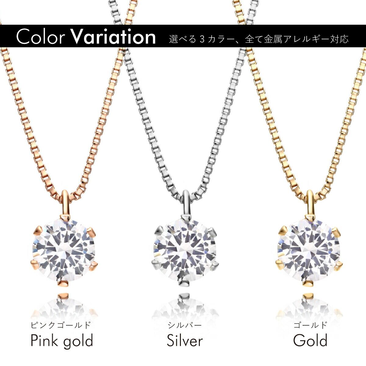 napa ペンダント レディース 6mm k24金 18金ピンクゴールド プラチナ本ロジウム 1粒 6本爪 ニッケルフリー 金属アレルギー対応 安心 長さ調節可能 ベネチアンチェーン 40cm シルバー メール便 送料無料 春夏秋冬 大人気 あす楽