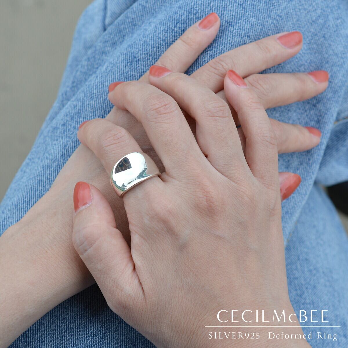 CECILMcBEE セシルマクビー シルバー925 リング レディース メンズ ユニセックス シャイニング デフォルメ ニュアンス 楕円形 窪み ゆがみ 変形 シンプル 幅広 ワイド 手磨き 鏡面仕上げ ロゴ 刻印 ポーチ 巾着袋 BOX プレゼント