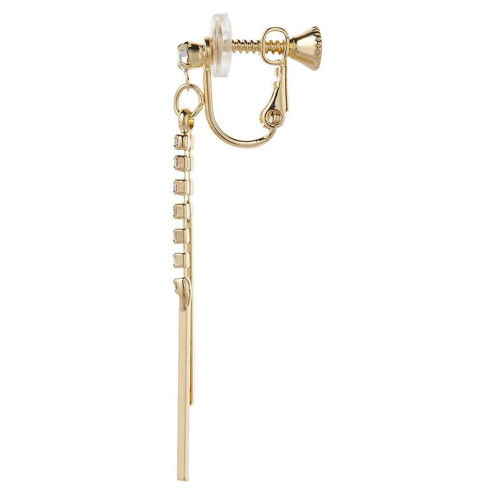 7粒と4粒のストーンにストレートバーが耳元で揺れて輝くイヤリング