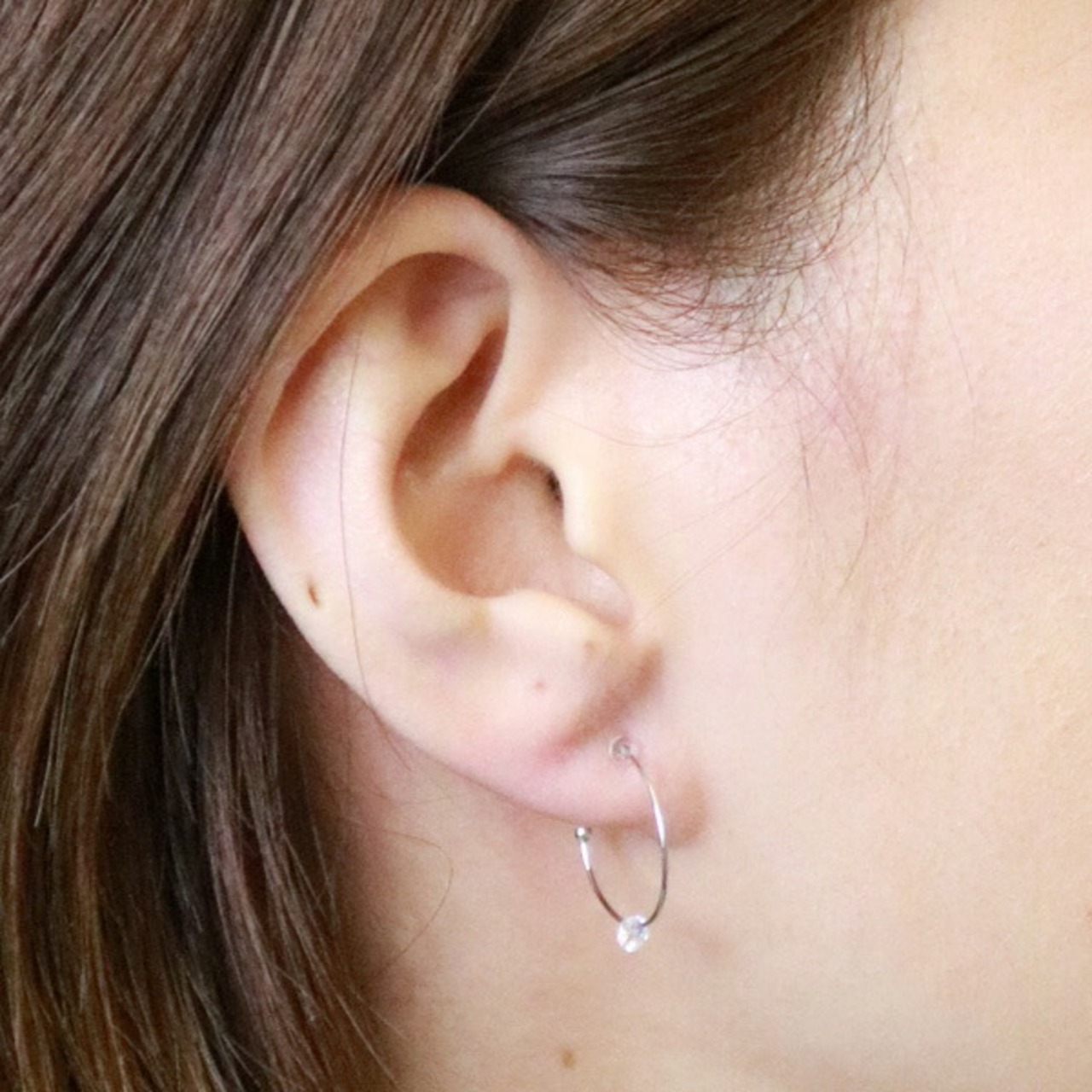 極細のワイヤーフープにストーンをあしらったフープピアスのセットです。