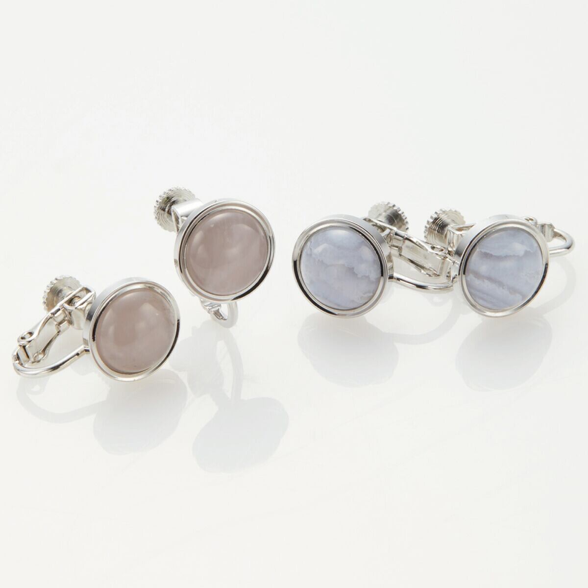 イヤリング レディース 天然石 カーネリアン 赤メノウ オニキス ローズクオーツ カルセドニー 覆輪 フクリン ラウンド 丸型 シンプル 上品 オシャレ かわいい 誕生日 記念日 プレゼント ギフト メール便送料無料
