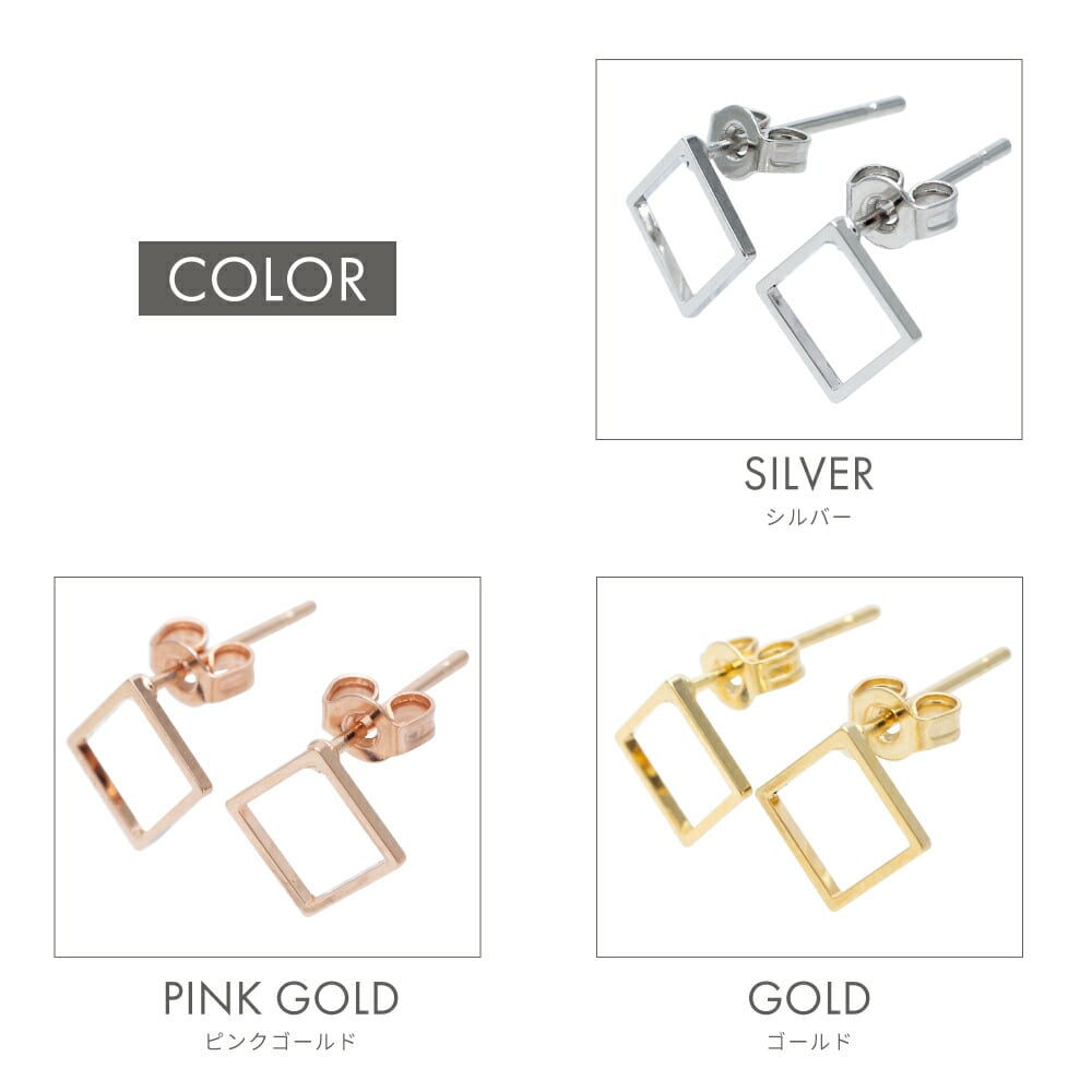 ピアス レディース 24K 18Kピンクゴールド プラチナ本ロジウム 四角いフレーム スタッド 日本製 金属アレルギー対応 ノーニッケル ニッケルフリー 両耳用 セカンドピアスにも メール便 送料無料 プチプラ 春夏秋冬 大人気 あす楽
