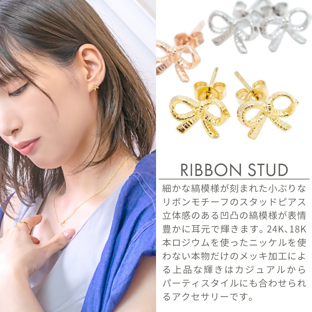 ピアス レディース 純金 24金 24K 18金 18Kピンクゴールド プラチナ スタッド リボン 小ぶり 日本製 金属アレルギー対応 ノンニッケル ニッケルフリー メール便 送料無料 春夏秋冬 大人気 あす楽