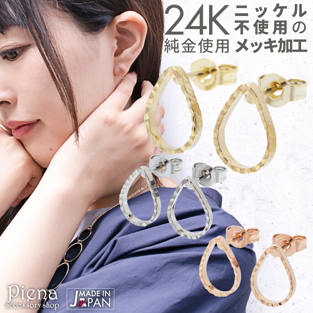 ピアス レディース 24K 18Kピンクゴールド プラチナ スタッド ティアドロップ フレーム 小ぶり 日本製 低金属アレルギー ノーニッケル メール便 送料無料 春夏秋冬 大人気 あす楽