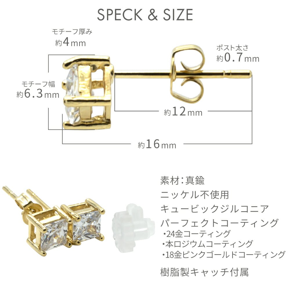 ピアス レディース 純金 24金 24K 18金 18Kピンクゴールド プラチナ スタッド ジルコニア キュービックジルコニア スクエア 小ぶり 日本製 金属アレルギー対応 ノンニッケル ノーニッケル メール便 送料無料 春夏秋冬 大人気 あす楽