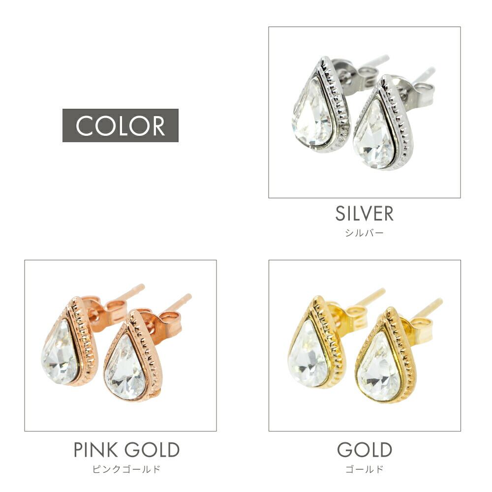 ピアス レディース 24K 18Kピンクゴールド プラチナ スタッド ティアドロップ しずく キラキラ 可愛い 小ぶり 日本製 低金属アレルギー ノーニッケル メール便 送料無料 春夏秋冬 大人気 あす楽