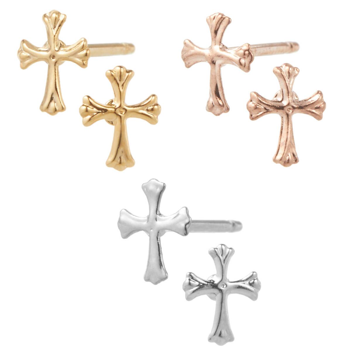 ピアス レディース 日本製 ニッケルフリー ノンニッケル パーフェクトコーティング 24K K18金 クロス 十字架 ロザリオ ミニ 小さい 極小 目立ちにくい お肌に優しい 金属アレルギー対応 金アレ 上品 かわいい 誕生日 記念日 プレゼント ギフト メール便送料無料