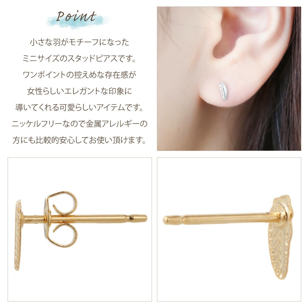 ピアス レディース 日本製 ニッケルフリー ノンニッケル パーフェクトコーティング 羽根 フェザー ミニ 小さい 極小 目立ちにくい お肌に優しい 金属アレルギー対応 金アレ 上品 かわいい 誕生日 記念日 プレゼント ギフト メール便送料無料