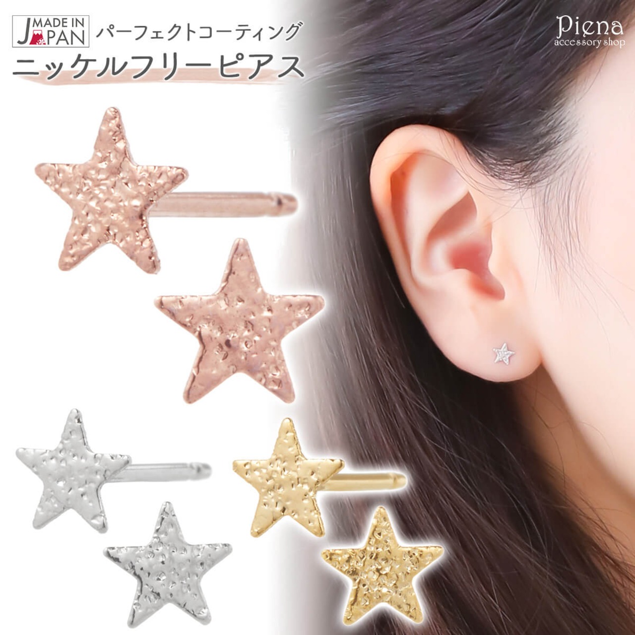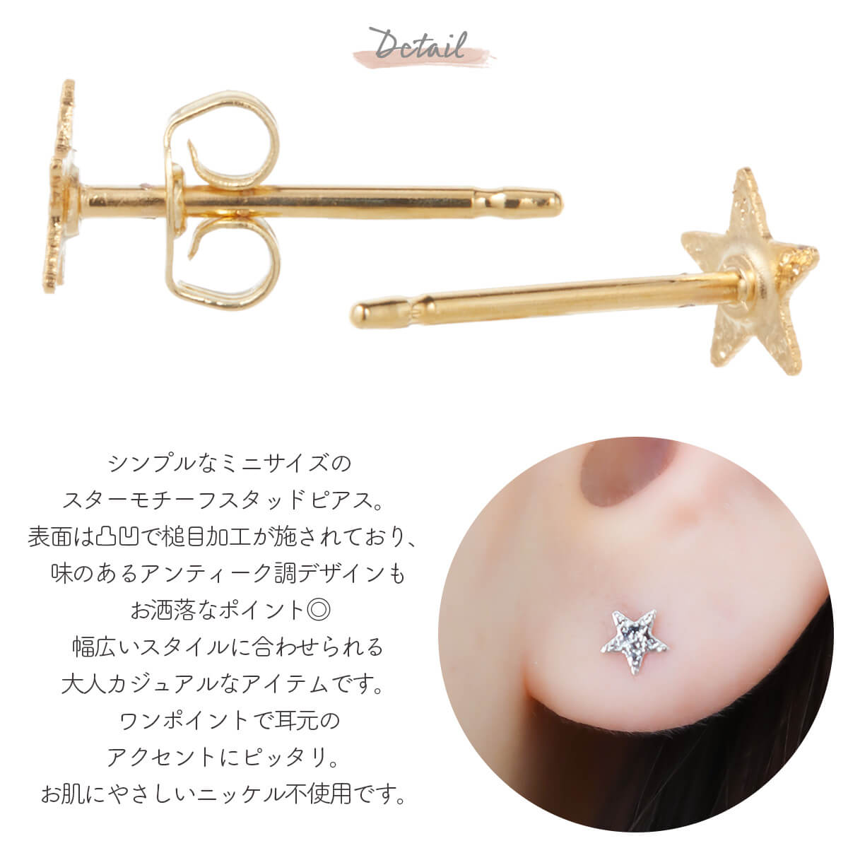 スタッドピアス レディース 日本製 ニッケルフリー パーフェクトコーティング 星 スター ダスト ざらざら 凸凹 ミニ 小さい 極小 目立ちにくい シンプル スタイリッシュ お肌に優しい 金属アレルギー 上品 かわいい 大人 誕生日 記念日 プレゼント ギフト メール便送料無料