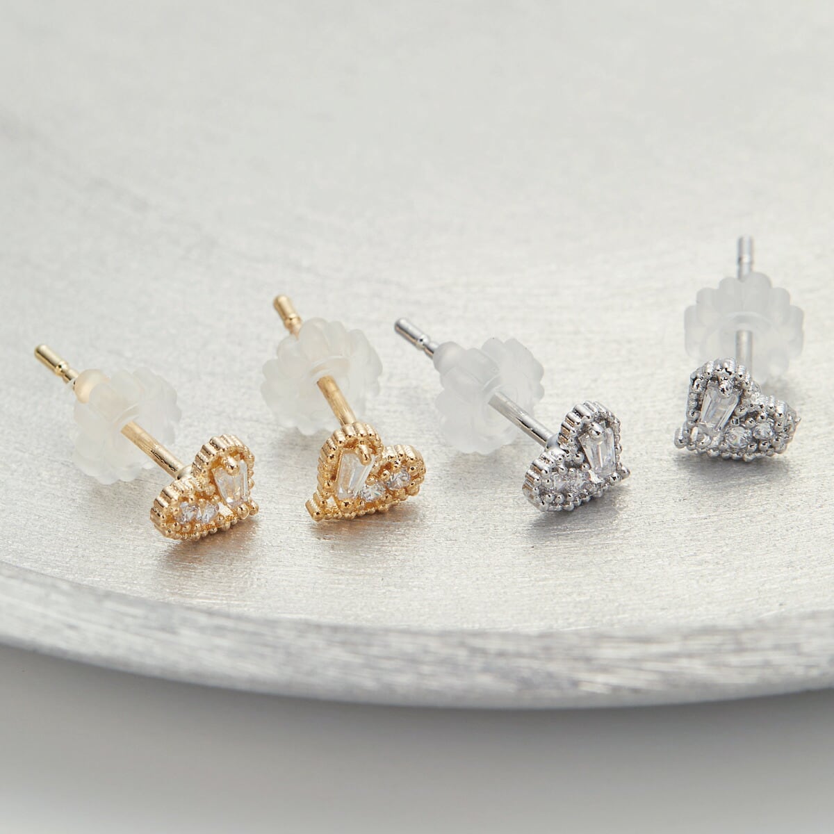 ピアス 金属アレルギー レディース ニッケルフリー ノンニッケル キュービックジルコニア ハート ビジュー ミル打ち ミニ 小さい シンプル キラキラ お肌に優しい 金属アレルギー対応 上品 かわいい 大人可愛い 誕生日 記念日 プレゼント ギフト メール便送料無料