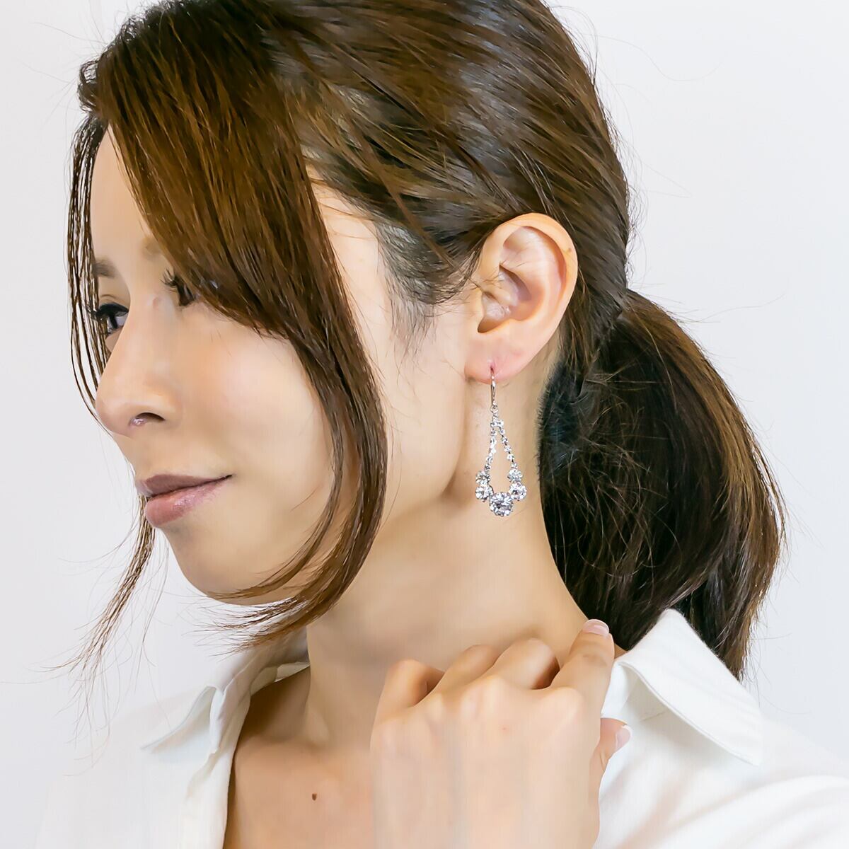 ペアシェイプのシルエットがキラキラと揺れ華やぎ、上品さあるラフデザイン。