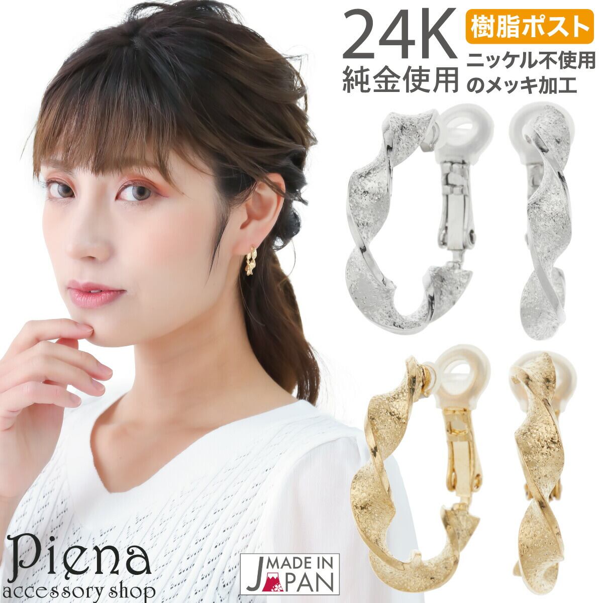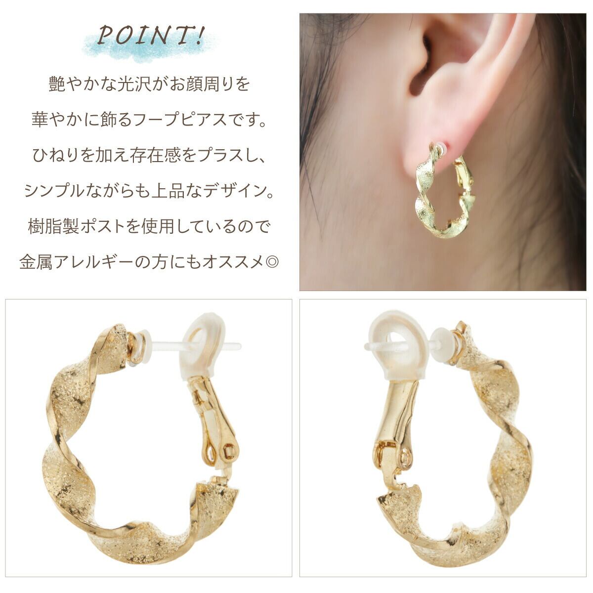 フープピアス レディース 日本製 ねじり ひねり ラメ加工 樹脂ポスト PI樹脂 ワンタッチ G型 シリコンカバー ノーニッケル ニッケルフリー お肌に優しい 金属アレルギー対応 金アレ 上品 オシャレ かわいい 誕生日 記念日 プレゼント ギフト メール便送料無料