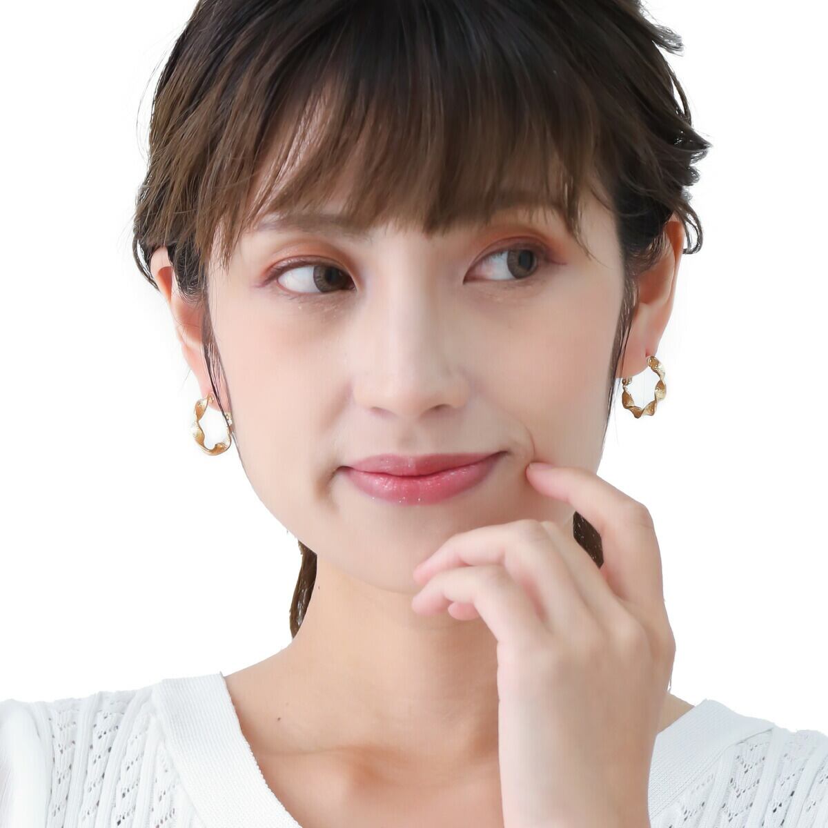 シンプルなデザインながら程よい存在感が耳元を繊細に彩り、