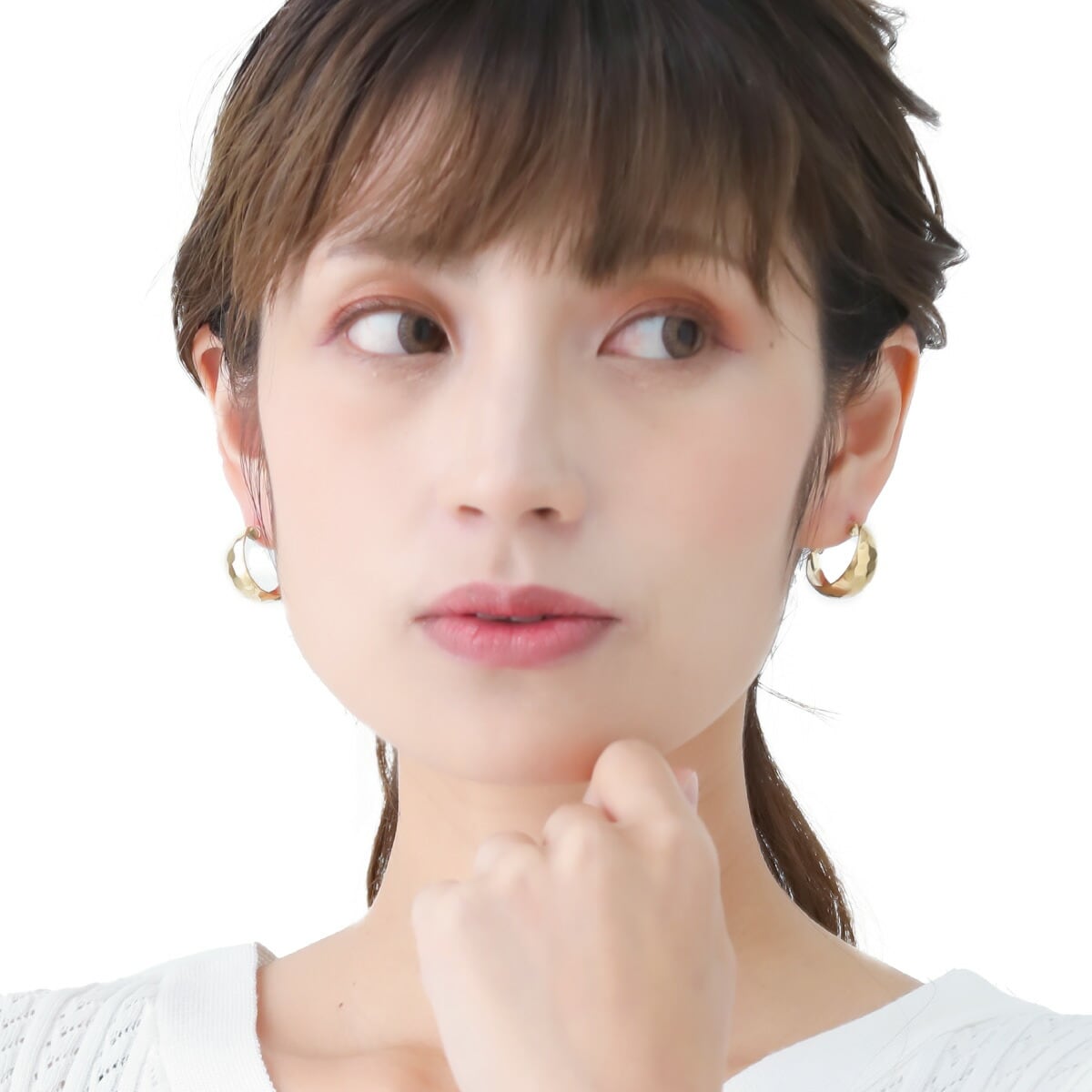 フープピアス レディース 日本製 たたき加工 甲丸 幅広 ワイド 太め 樹脂ポスト PI樹脂 ワンタッチ G型 シリコンカバー ノーニッケル ニッケルフリー お肌に優しい 金属アレルギー対応 金アレ 上品 オシャレ かわいい 誕生日 記念日 プレゼント ギフト メール便送料無料