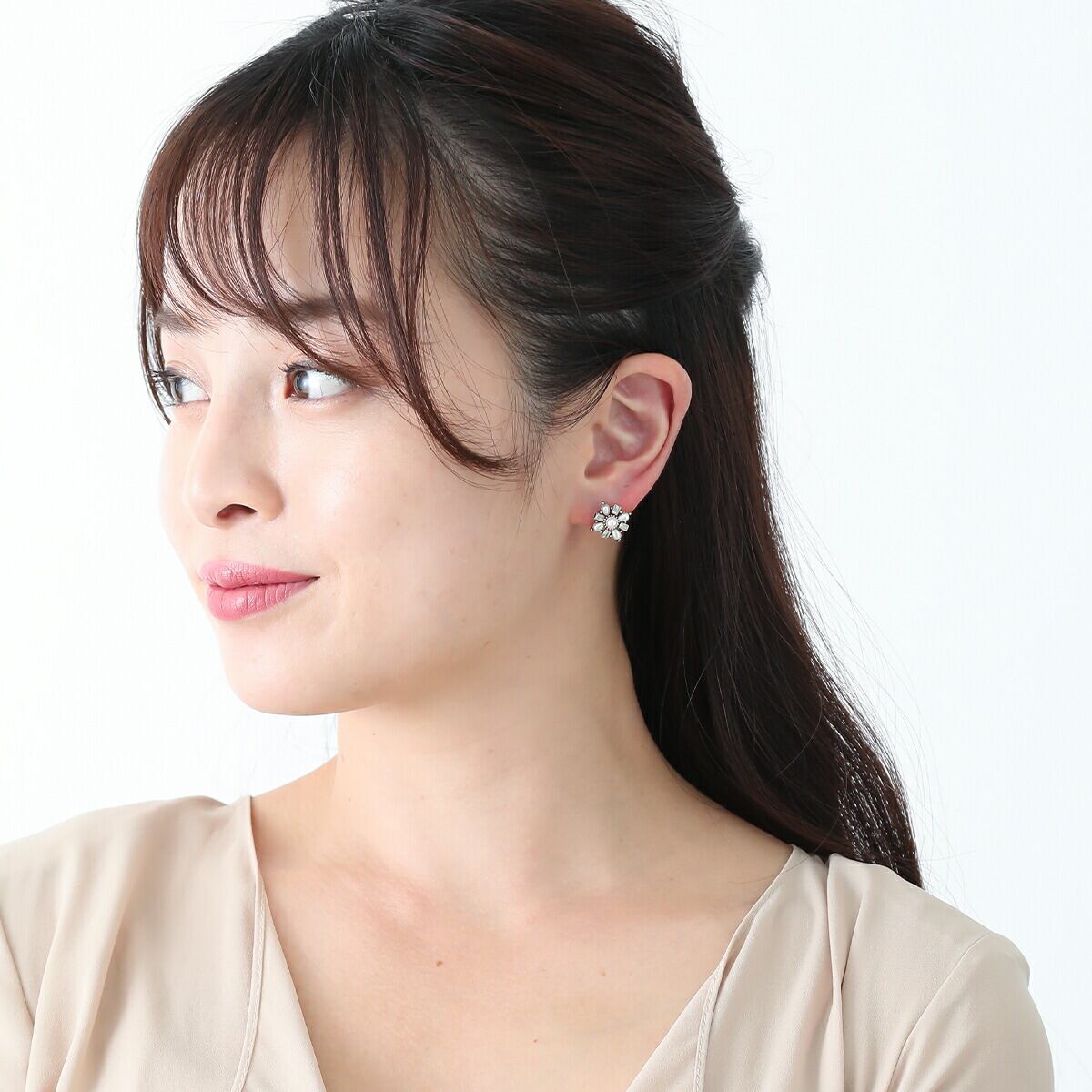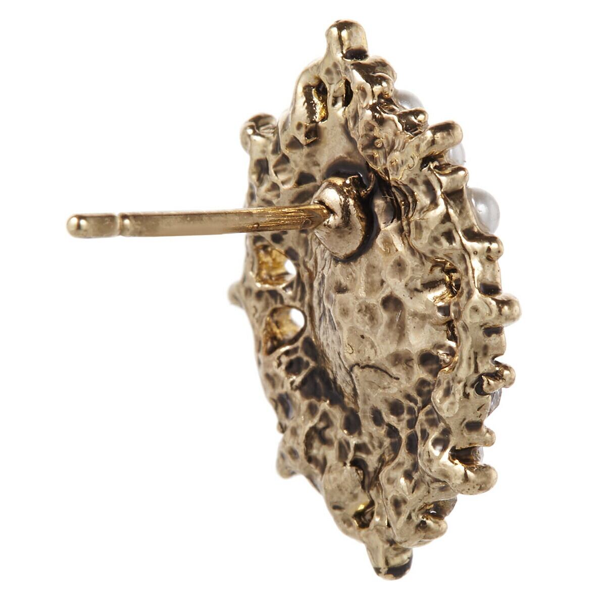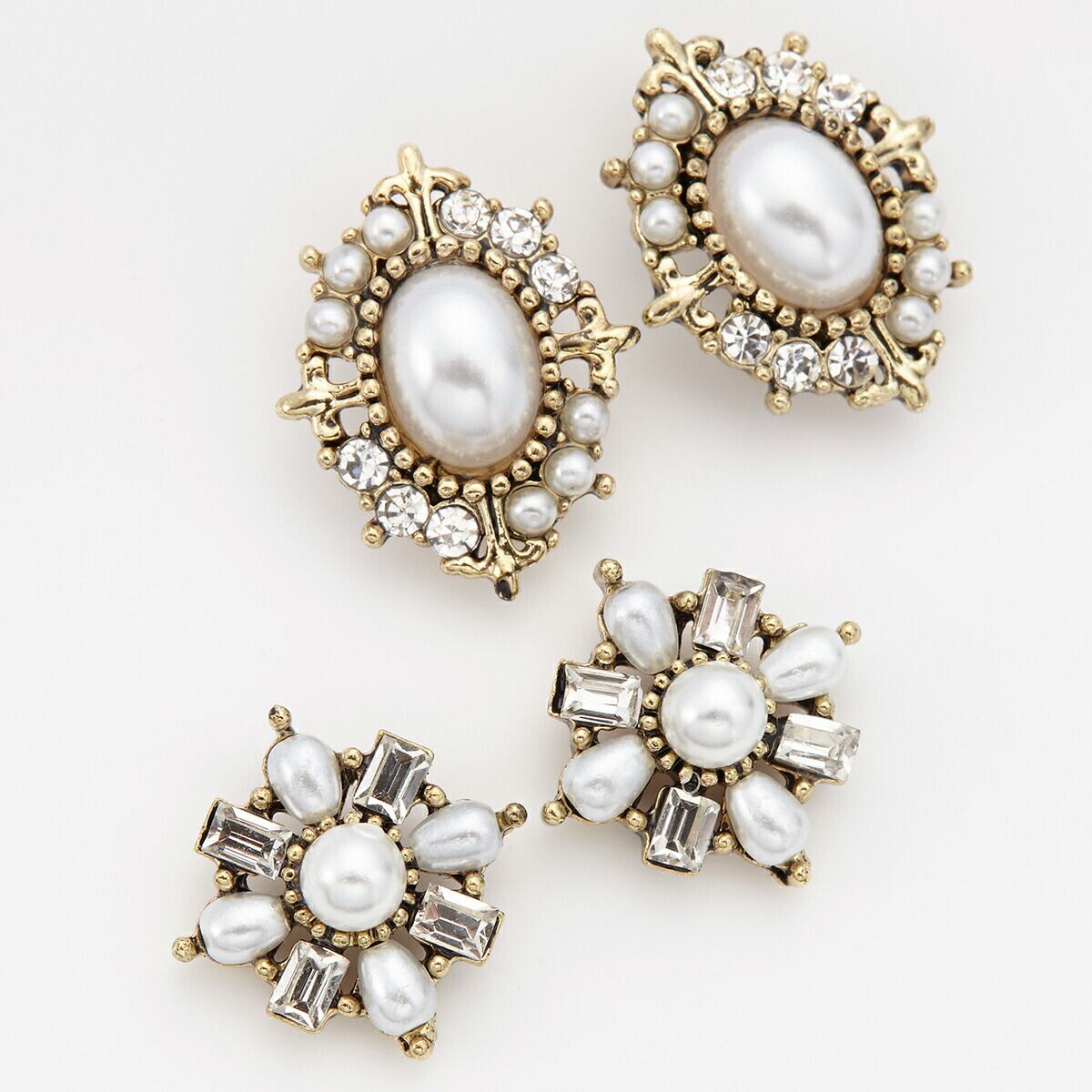 フェイクパールとラインストーンをあしらったアンティーク風スタッドピアス