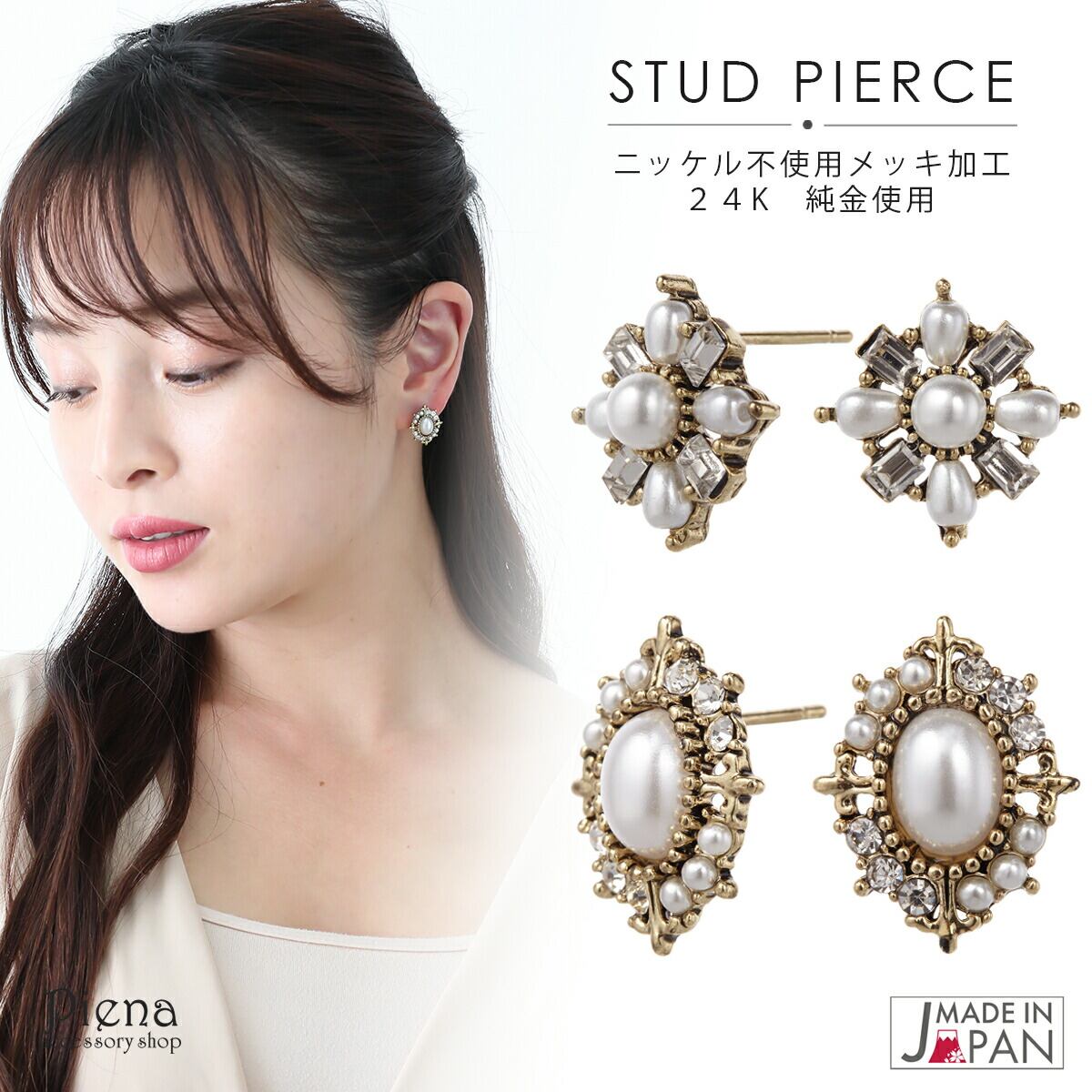 ピアス レディース 24K フェイクパール アンティーク 日本製 金属アレルギー対応 ノーニッケル ニッケルフリー 小さめ フォーマル 普段使い 24karats ゴールド おしゃれ 可愛い ギフト 贈り物 プレゼント 記念日 メール便 送料無料