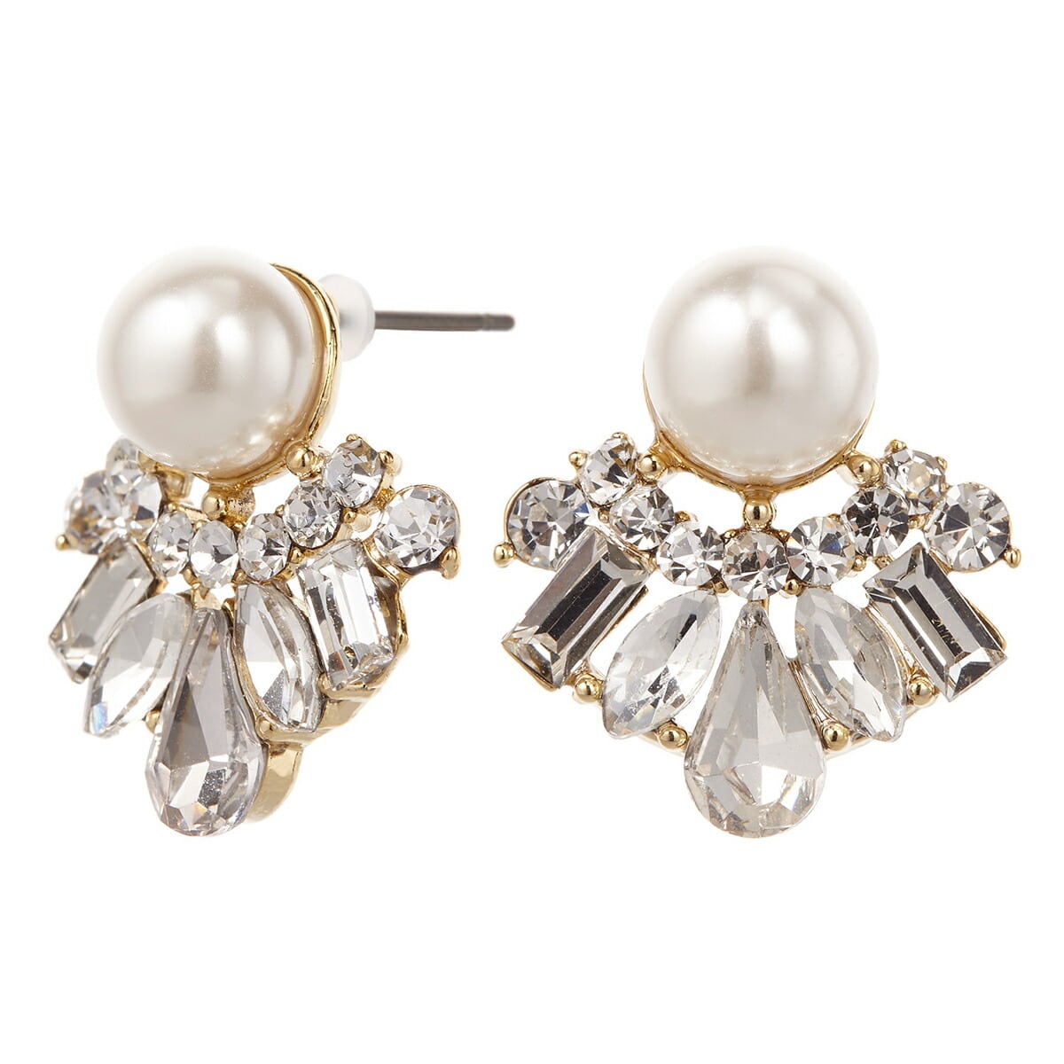 フェイクパールとラインストーンを散りばめた華やかなスタッドピアス