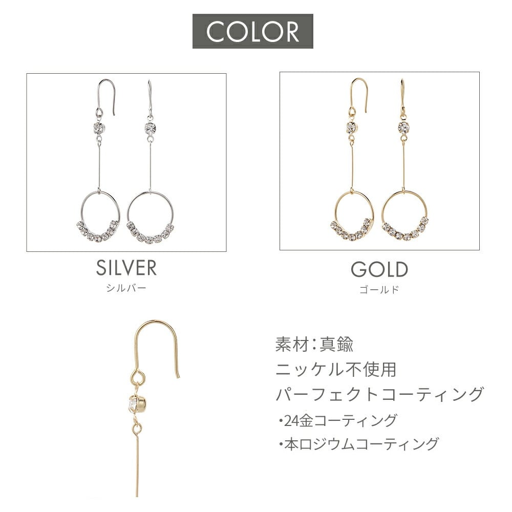 ピアス レディース フック サークル ニッケルフリーポスト 24金 24K ラインストーン フリンジ 揺れる ジプシー プラチナ シンプル 日本製 金属アレルギー対応 ノーニッケル ニッケルフリー かわいい 長め 大きめ シルバー ゴールド メール便 送料無料 春夏秋冬 大人気 あす楽