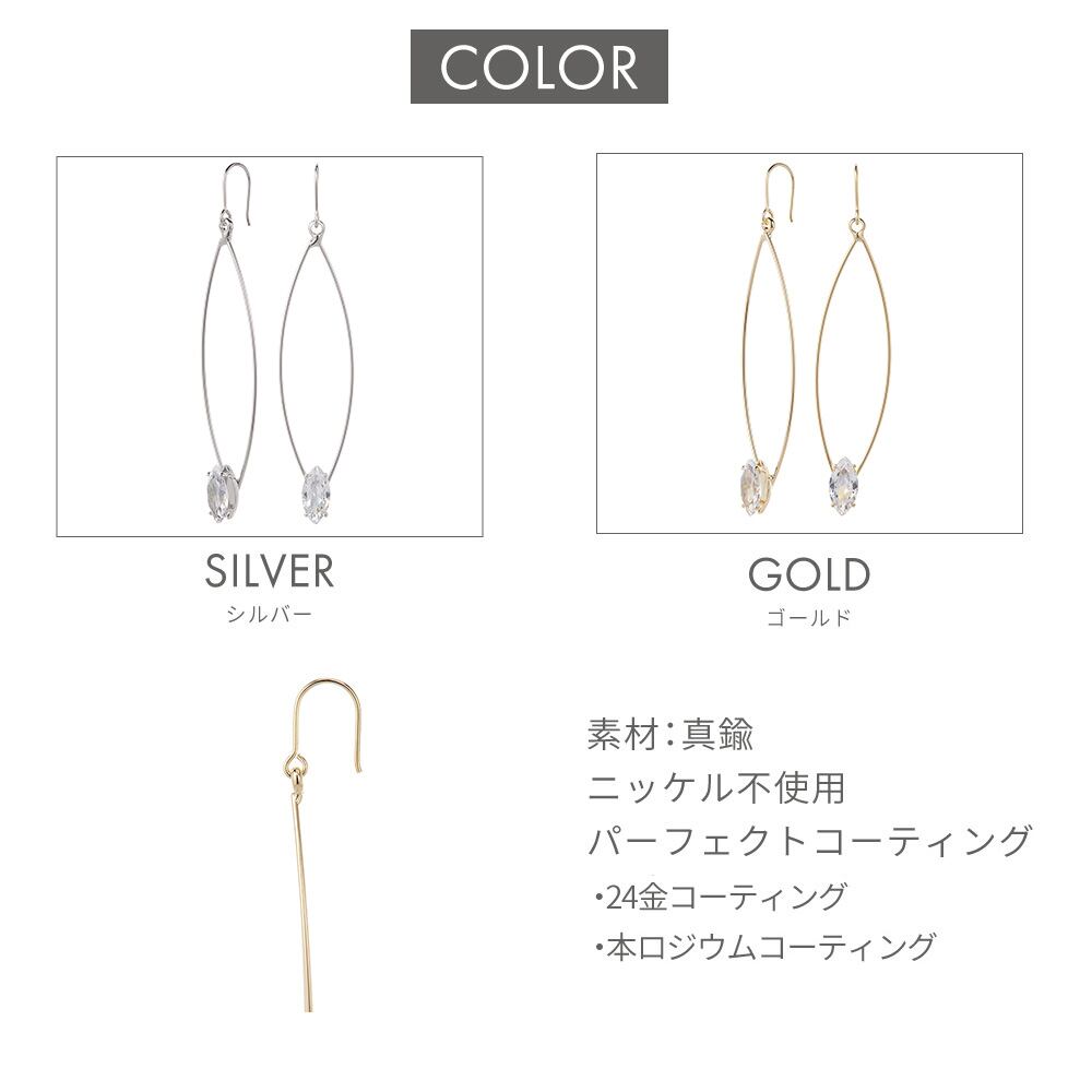 フックピアス レディース 楕円 ニッケルフリーポスト 24金 24K ラインストーン フリンジ 揺れる ジプシー プラチナ シンプル 日本製 金属アレルギー対応 ノーニッケル ニッケルフリー 長め シルバー ゴールド メール便 送料無料 春夏秋冬 大人気 あす楽