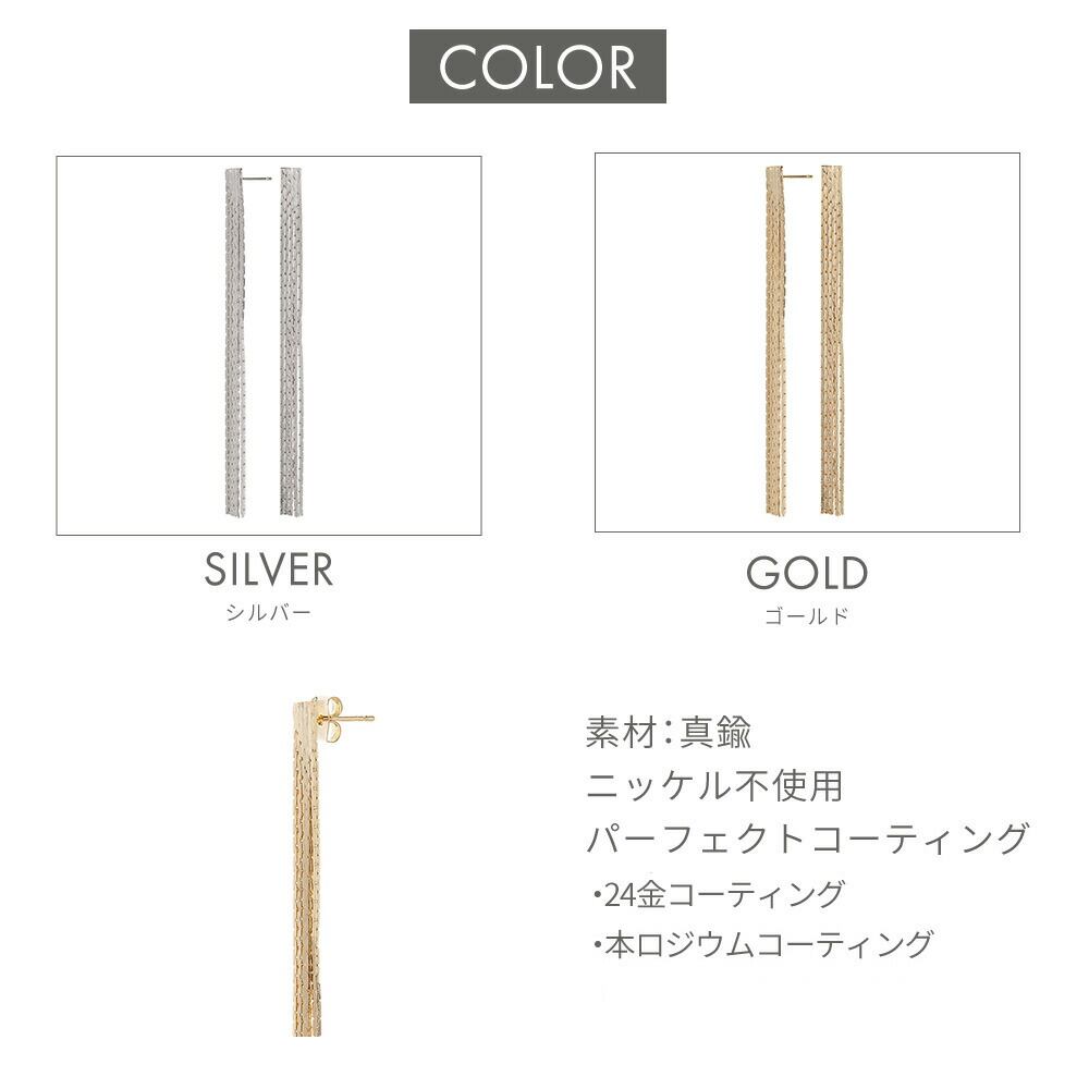 スタッドピアス つけっぱなし レディース チェーン ロング サージカルステンレスポスト 24金 24K フリンジ 揺れる ジプシー パーティー 長め プラチナ シンプル 日本製 金属アレルギー対応 ノーニッケル ニッケルフリー シルバー ゴールド メール便 送料無料 大人気 あす楽