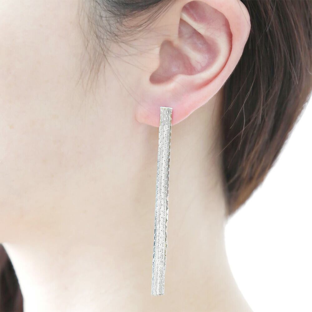 ロングサイズのストレートチェーンが揺れて輝くニッケルフリースタッドピアスです。