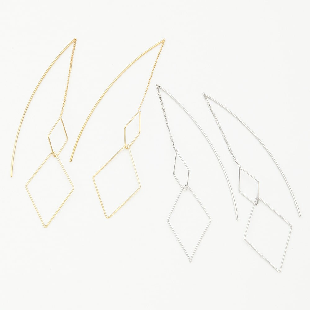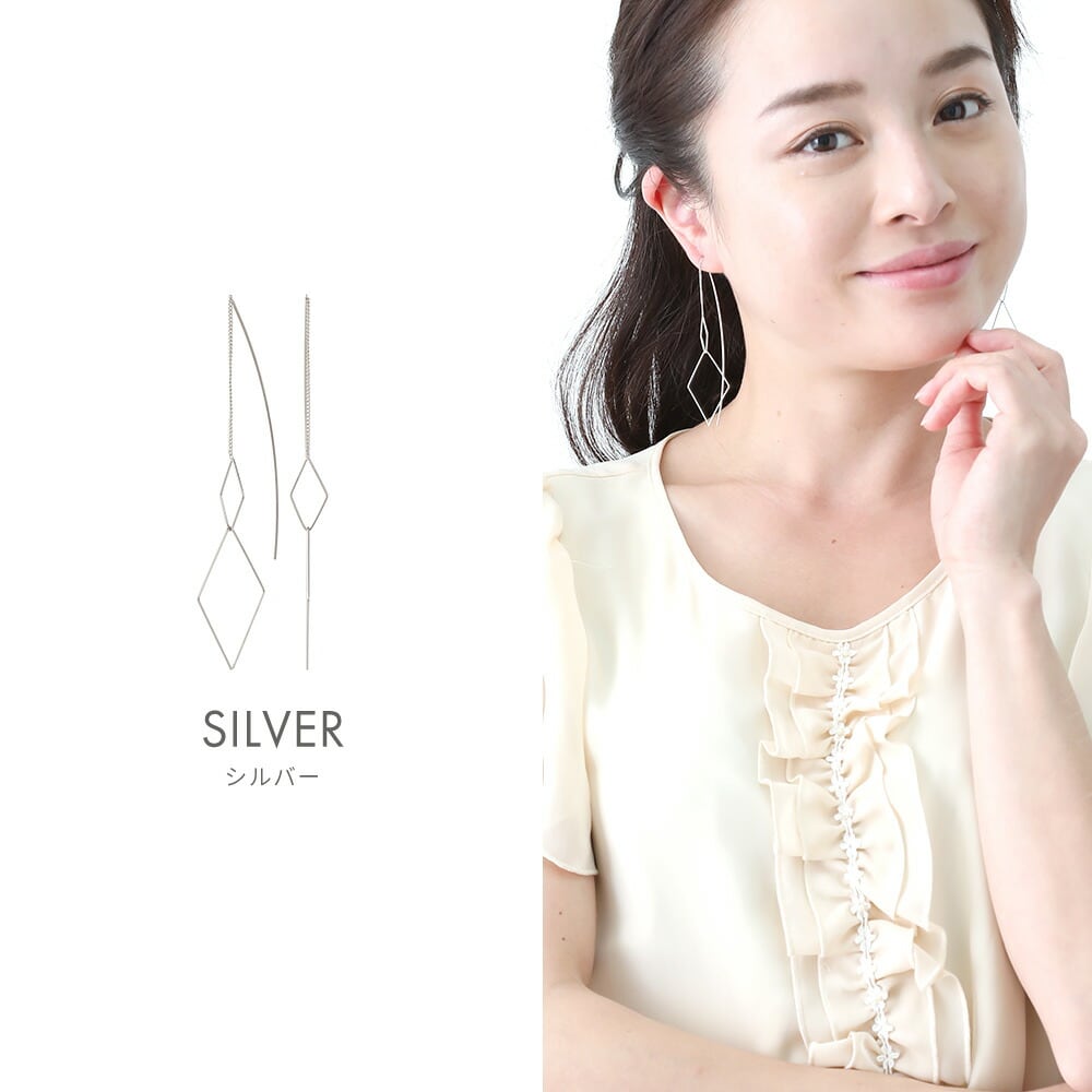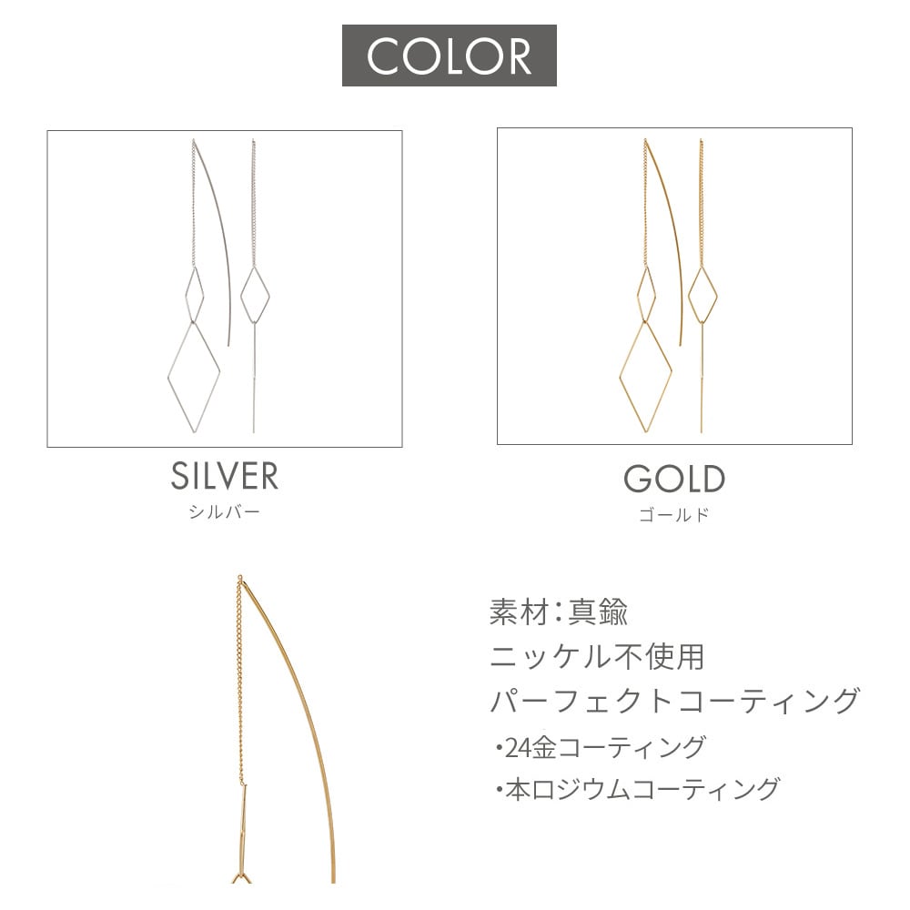 アメリカンピアス レディース ロング 菱形 24金 24K フリンジ 揺れる ジプシー パーティー 長め プラチナ シンプル 日本製 金属アレルギー対応 ノーニッケル ニッケルフリー シルバー ゴールド メール便 送料無料 大人気 あす楽