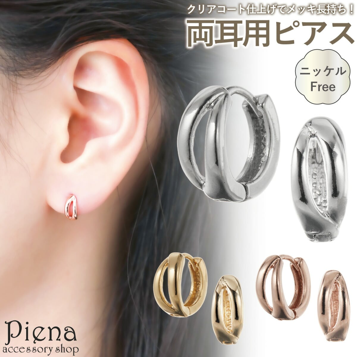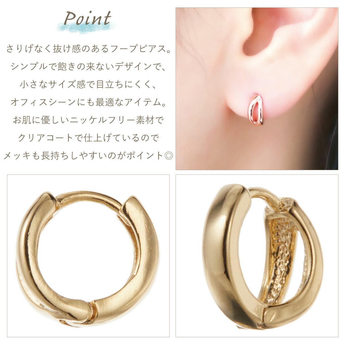 フープピアス レディース 両耳用 ニッケルフリー クリアコート 変色防止加工 抜け感 ミニ 小さめ 中折れ キャッチレス ワンタッチ シンプル お肌に優しい 金属アレルギー対応 オシャレ 上品 誕生日 記念日 プレゼント ギフト メール便送料無料