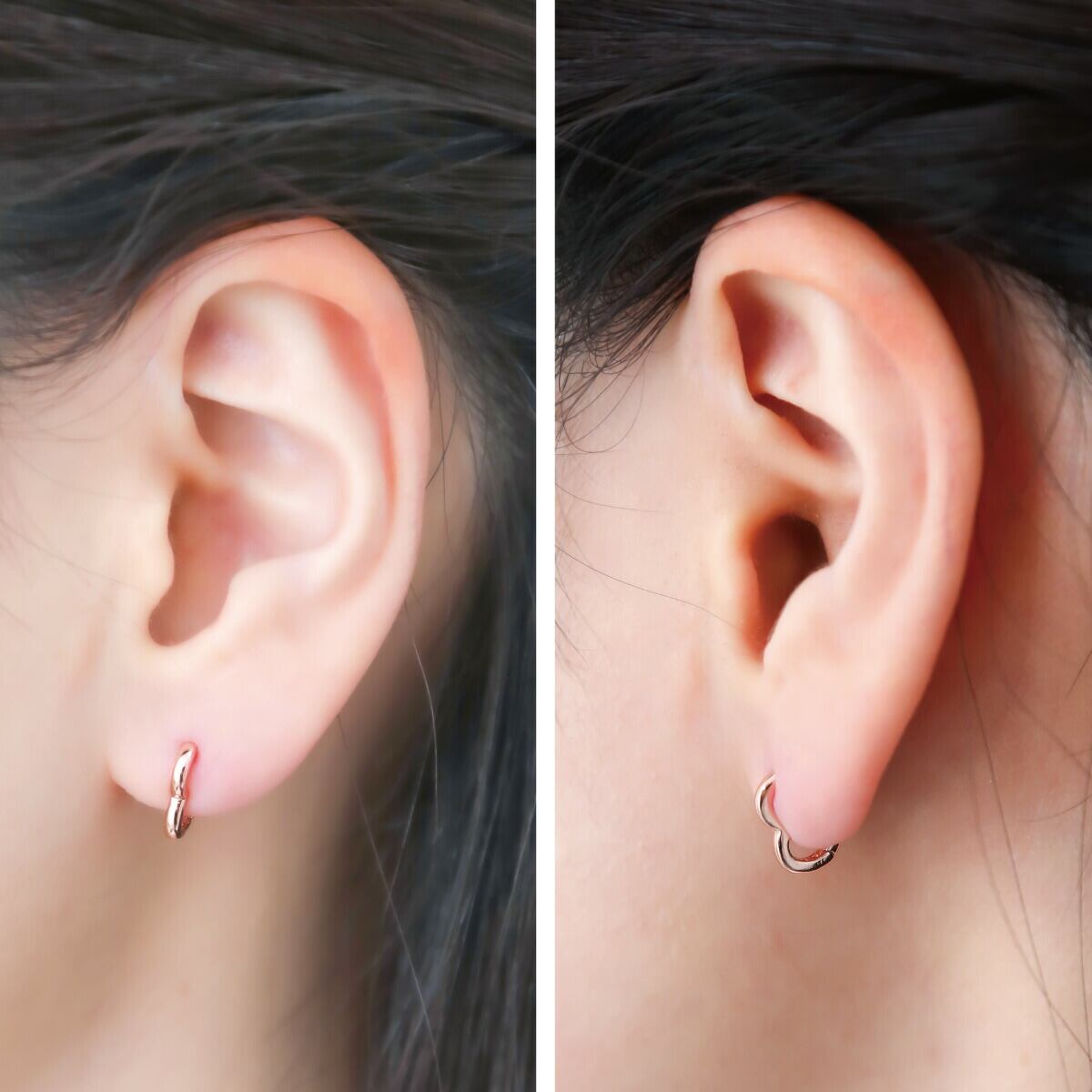 正面から見るとシンプルで華奢なフープピアスが