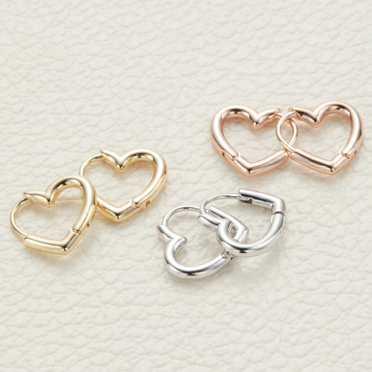 フープピアス レディース 両耳用 ニッケルフリー クリアコート 変色防止加工 ハート型 オープンハート ミニ 小さい 中折れ キャッチレス ワンタッチ シンプル お肌に優しい 金属アレルギー対応 オシャレ 上品 誕生日 記念日 プレゼント ギフト メール便送料無料