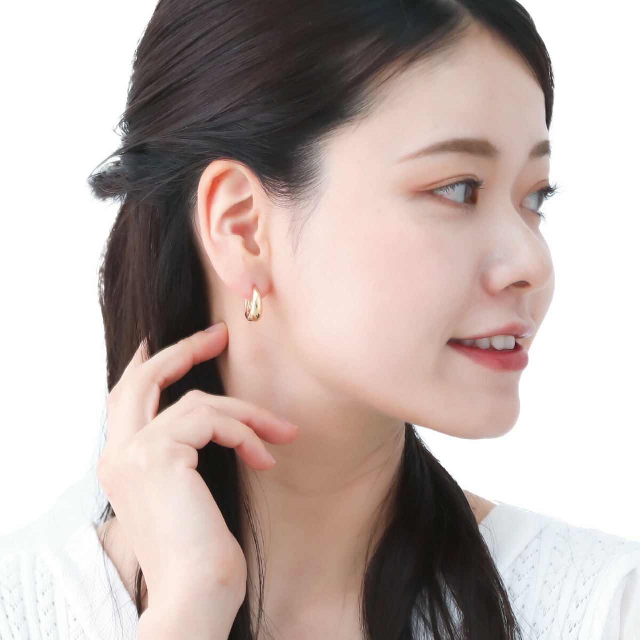 フープピアス レディース 両耳用 ニッケルフリー クリアコート 変色防止加工 ドロップ 雫 しずく型 中折れ キャッチレス ワンタッチ シンプル お肌に優しい 金属アレルギー対応 オシャレ 上品 誕生日 記念日 プレゼント ギフト メール便送料無料