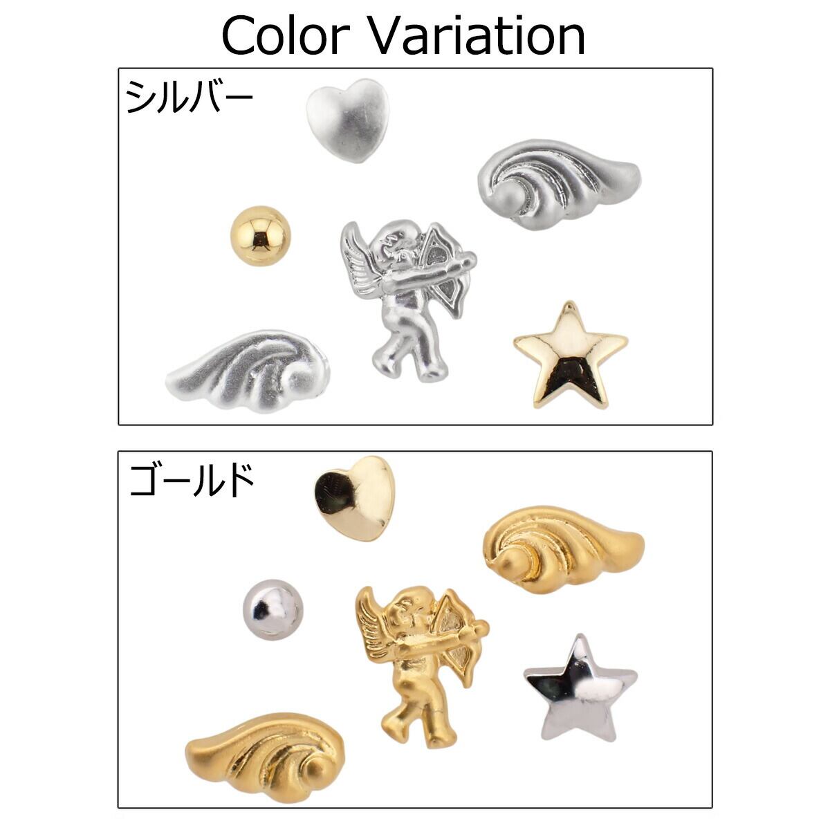 とっても可愛い天使、星型、ハート型等のピアス5種類がお買い得なセットに