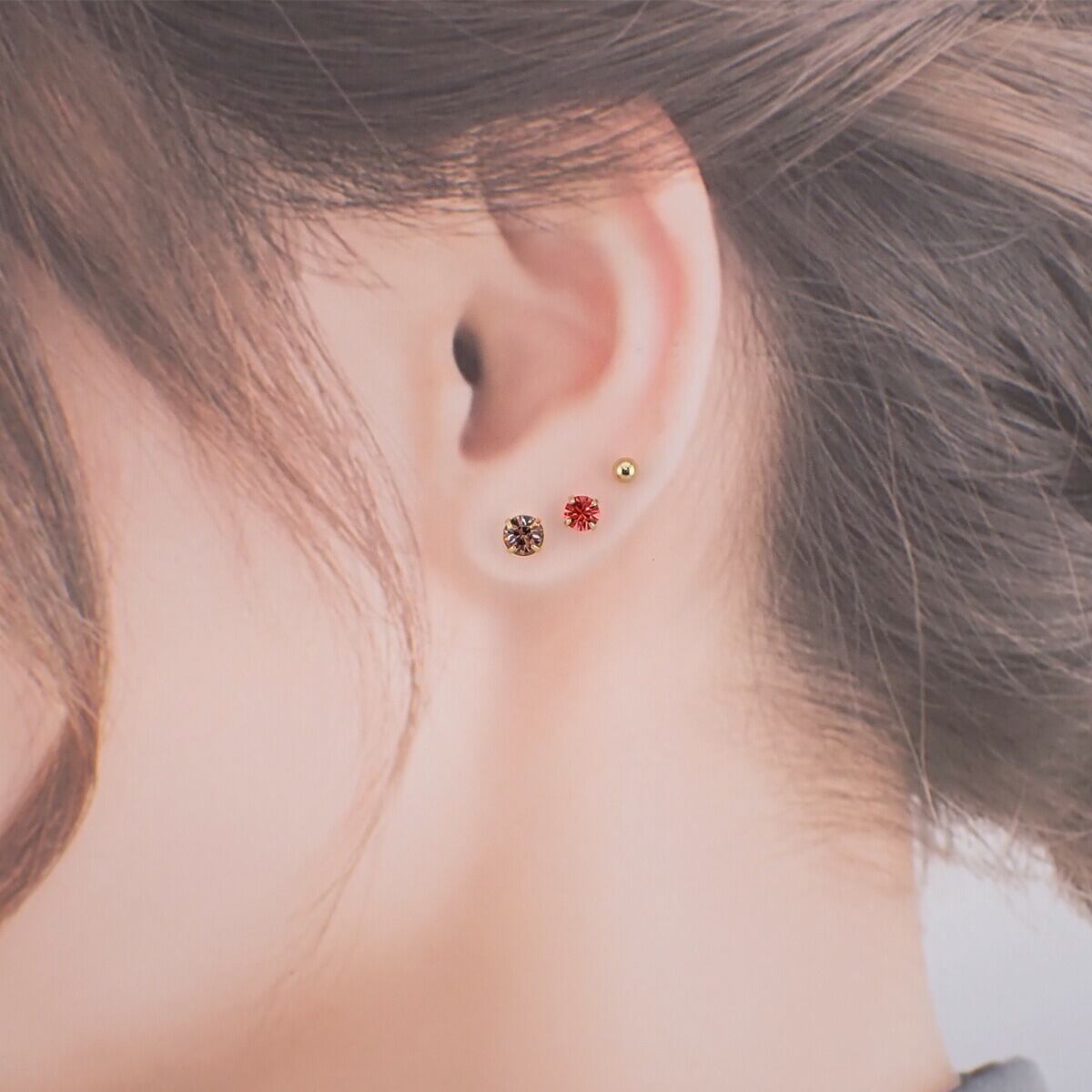高級感あふれるシェル風丸型ジプシーピアス 、他6点が1つのセットピアスに