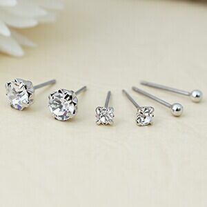 ピアス つけっぱなし レディース 大きさが異なる2種類のラインストーンのピアス つけっぱなし シンプルなボールピアス つけっぱなしセット 合計6点セット サージカルステンレス製ポスト メール便 送料無料 金属アレルギー対応 春夏秋冬 大人気 あす楽