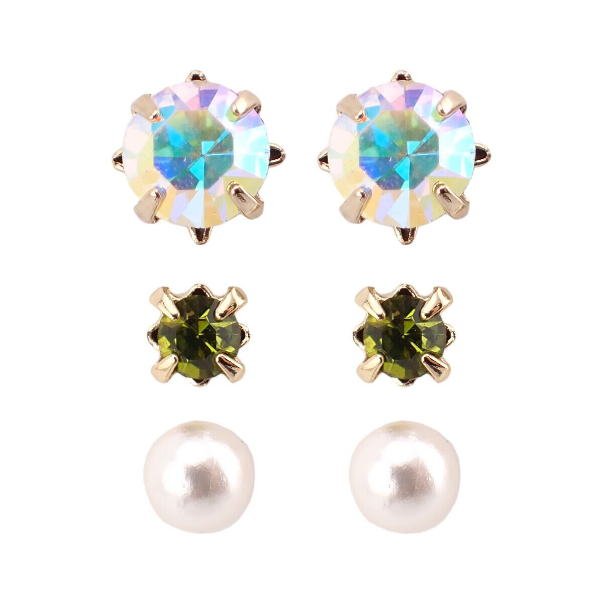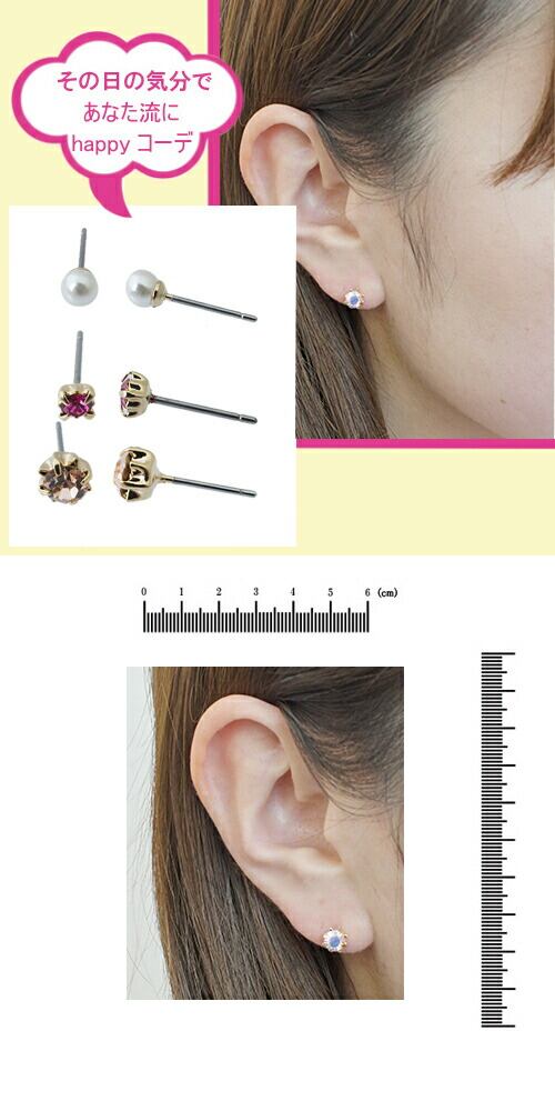 ピアス つけっぱなし レディース 大きさとカラーが異なる2種類のラインストーンのピアス つけっぱなし シンプルなパールピアス つけっぱなしセット 合計6点セット サージカルステンレス製ポスト メール便 送料無料 金属アレルギー対応 春夏秋冬 大人気 あす楽
