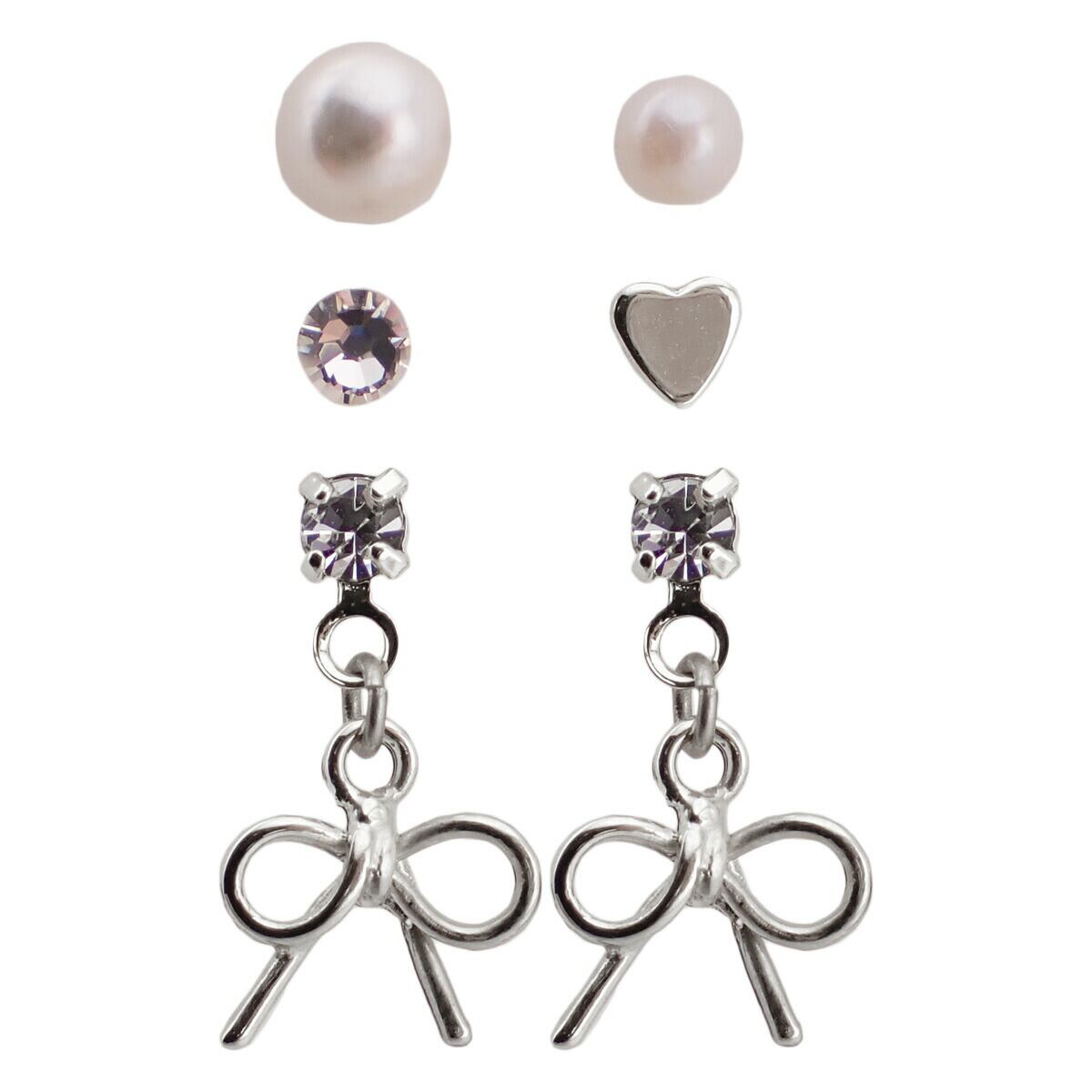 ピアス つけっぱなし レディース サージカルステンレス製ポストのリボンモチーフピアス つけっぱなし ハート ストーン合計6点セット メール便 送料無料 金属アレルギー対応 春夏秋冬 大人気 あす楽