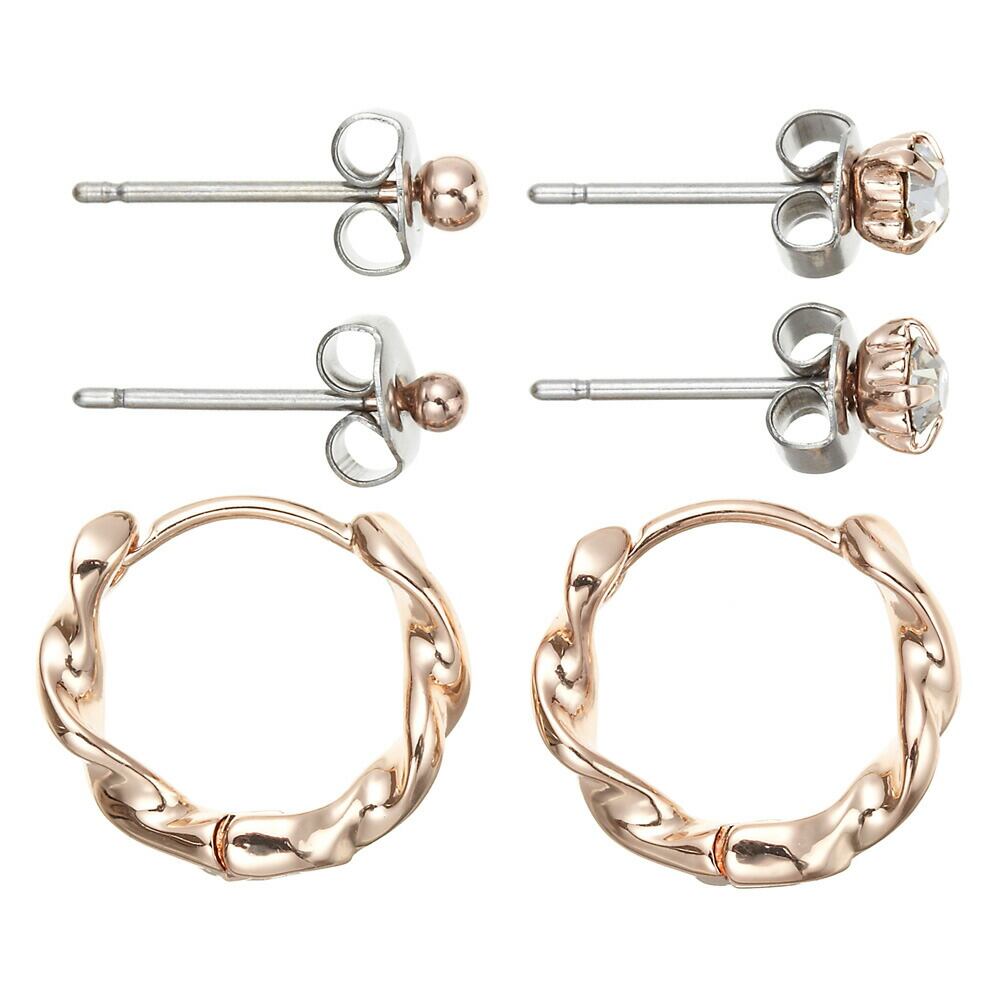 フープピアス スタッドピアスセット ニッケルフリー スクリューライン ミニフープ ストーンペア ボール大小 メール便 送料無料 春夏秋冬 大人気 あす楽
