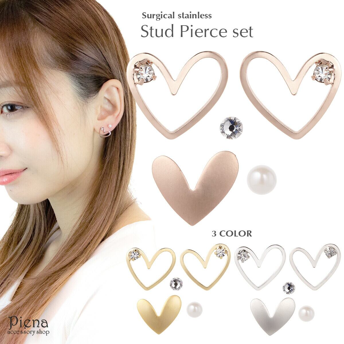 ピアスセット レディース 5点セット サージカルステンレス製ポスト ハート オープンハート 小粒 1粒 パール 金属アレルギー対応 安心 普段使い 大人かわいい 小さめ 1石 ゴールド シルバー ピンクゴールド クリア 透明 カジュアル プレゼント ギフト 春夏秋冬 大人気