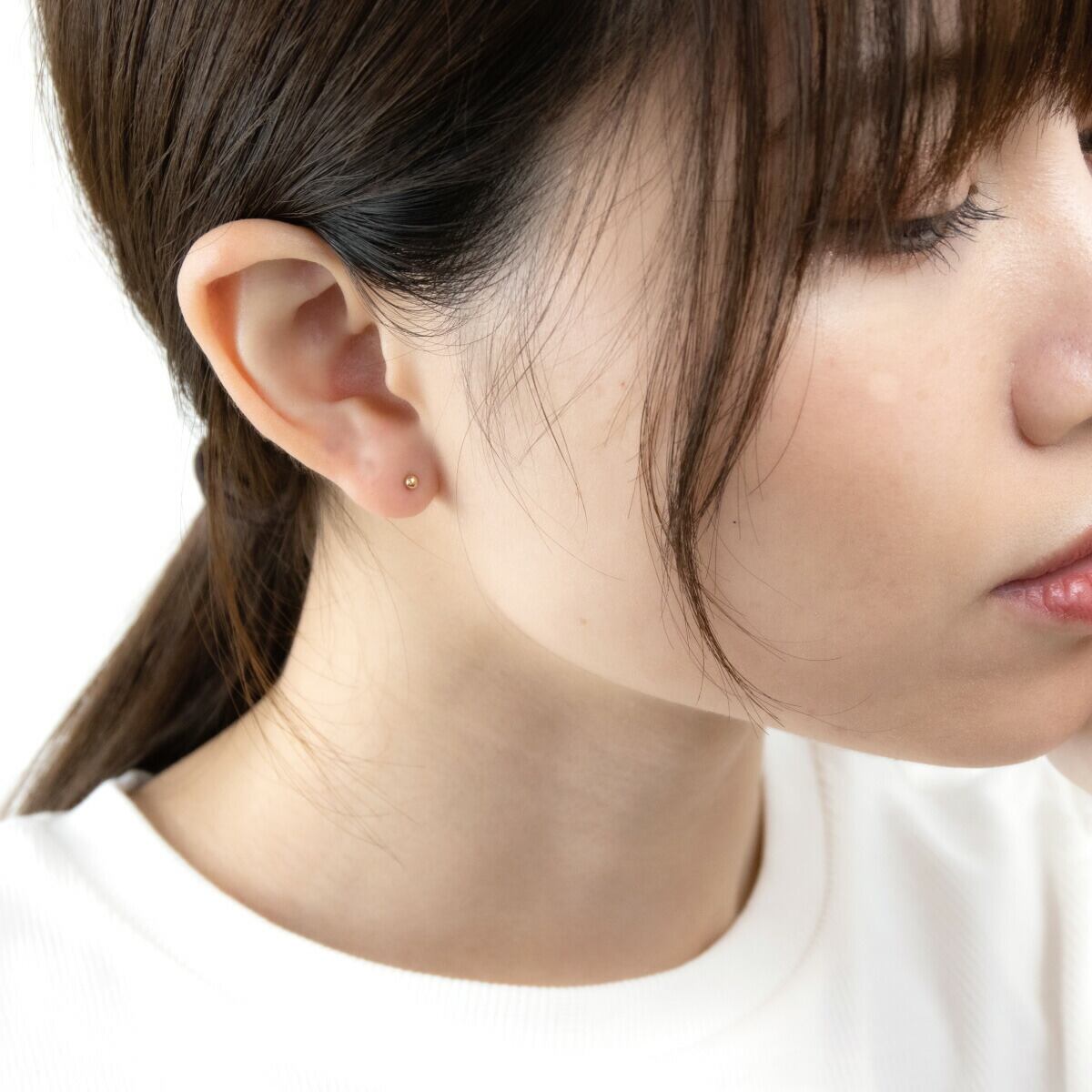 ボールピアスはヘッドが丸く、引っ掛かることも少ないので