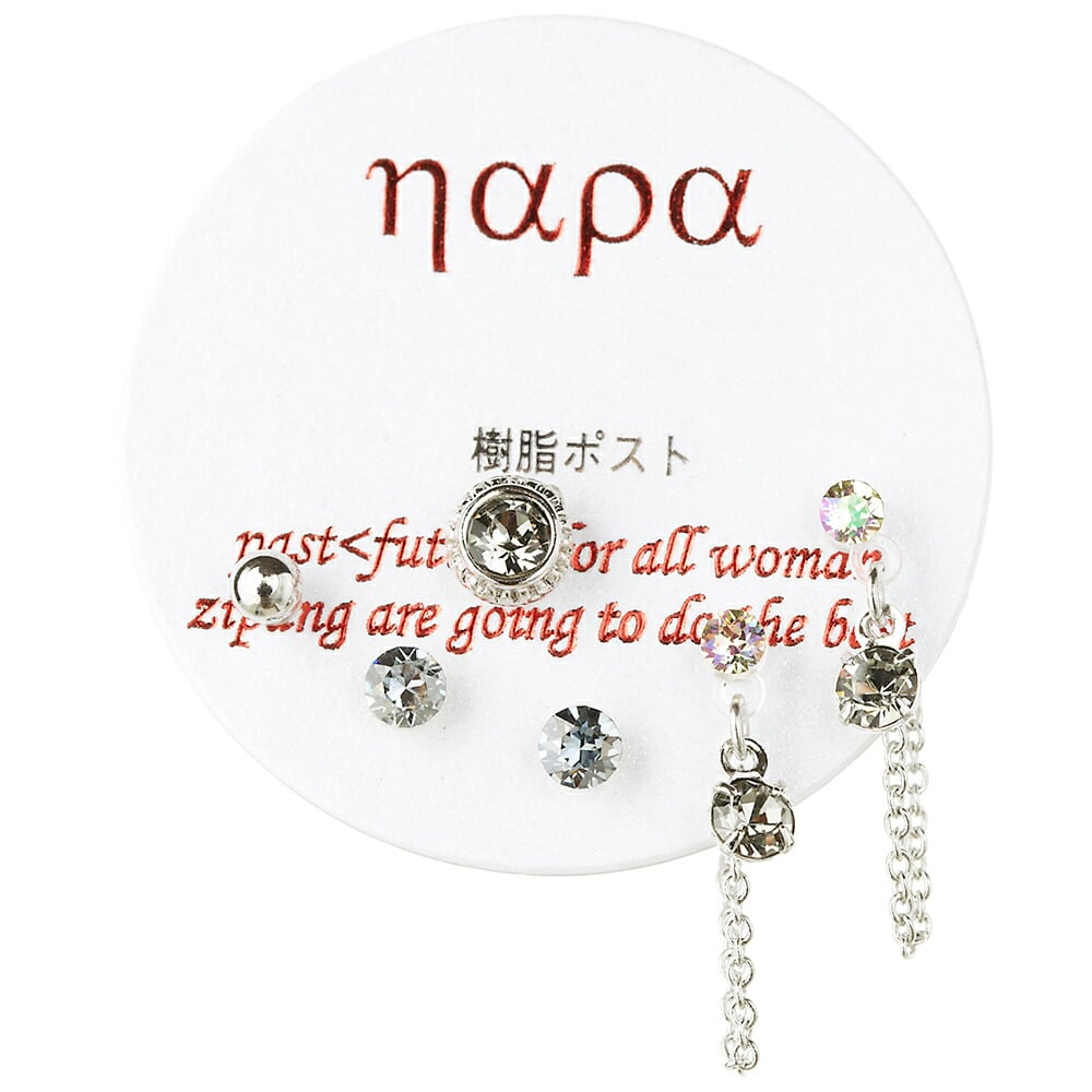 NAPA スタッドピアスセット レディース 金属アレルギー対応 樹脂製ポスト ノンアレルギー バックキャッチ バックチャームフリンジチェーン ストーンスタッド メタルボール 6点セット お買い得 メール便送料無料 春夏秋冬 大人気 あす楽
