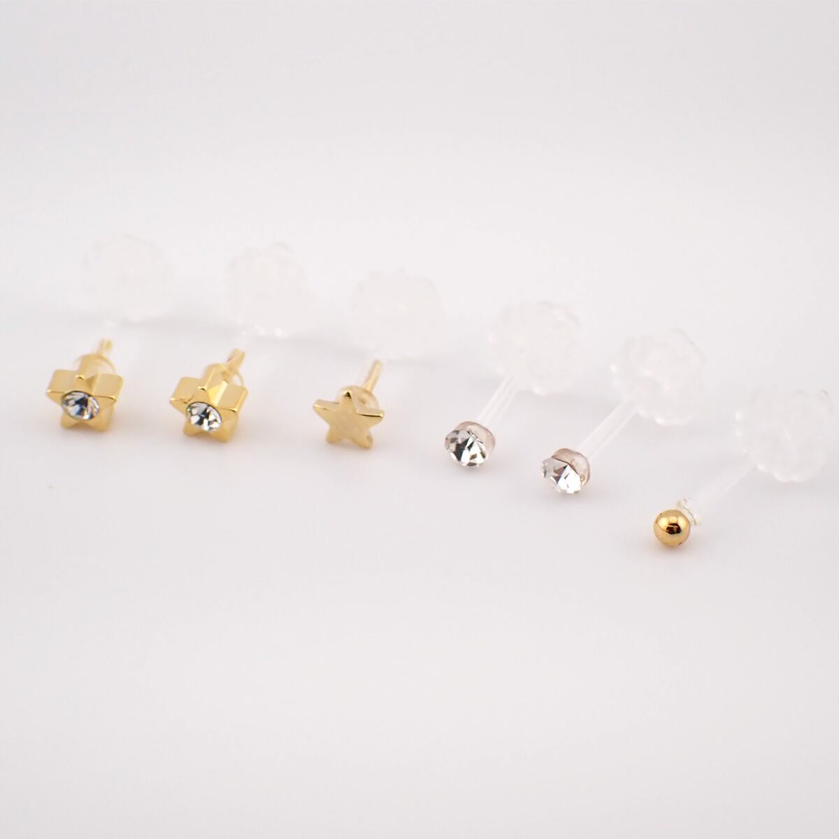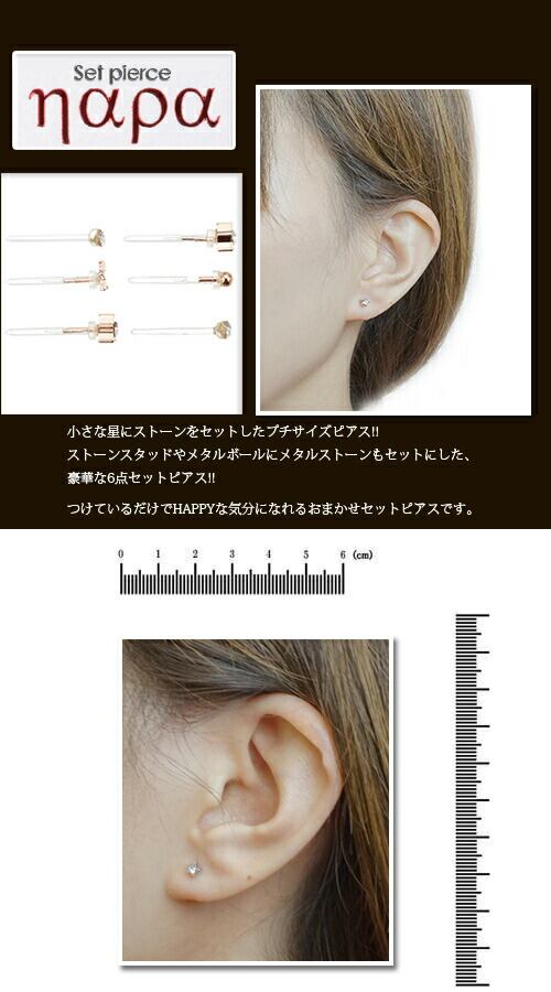 NAPA スタッドピアスセット レディース 金属アレルギー対応 樹脂製ポスト ノンアレルギー プチサイズスター 星 ストーン メタルボール シルバー ピンクゴールド 小さい 小振り 1ペア お仕事用 繊細 華奢 お買い得 メール便送料無料 春夏秋冬 大人気 あす楽
