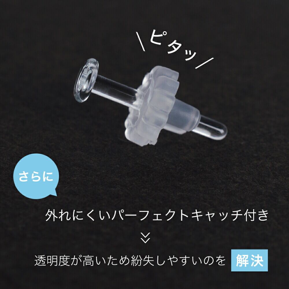 本体は耐熱性強化ガラス、キャッチはシリコン製なので金属アレルギーの方でも安心してお使い頂けます。